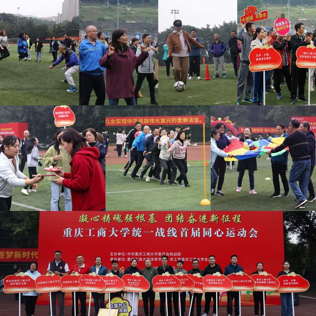 11月24日下午,JINNIAN金年会在南岸校区北区运动场成功举办“凝心铸魂强根基 团结奋进新征程”统一战线首届同心运动会。本次运动会是学校首次举办的专门由民主党派、无党派人士、归国留学人员、侨眷侨属、少数民族教职工、统战干部等统一战线成员共同参与的运动会,由学校党委统战部主办,体育学院和农工党学校支部承办。学校党委副书记兼统战部部长宋豫,学校党委常委、纪委书记、监察专员张海燕出席活动。学校党委常委、党委统战部常务副部长陈松主持开、闭幕式。