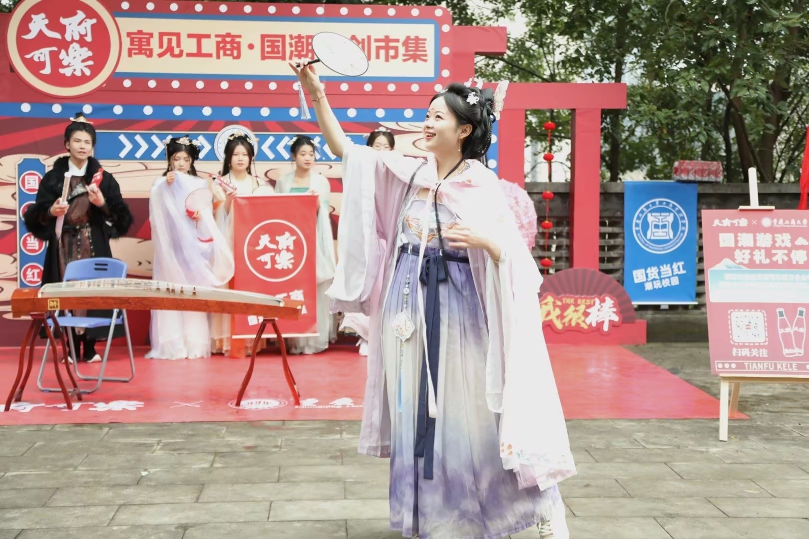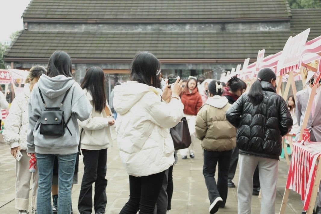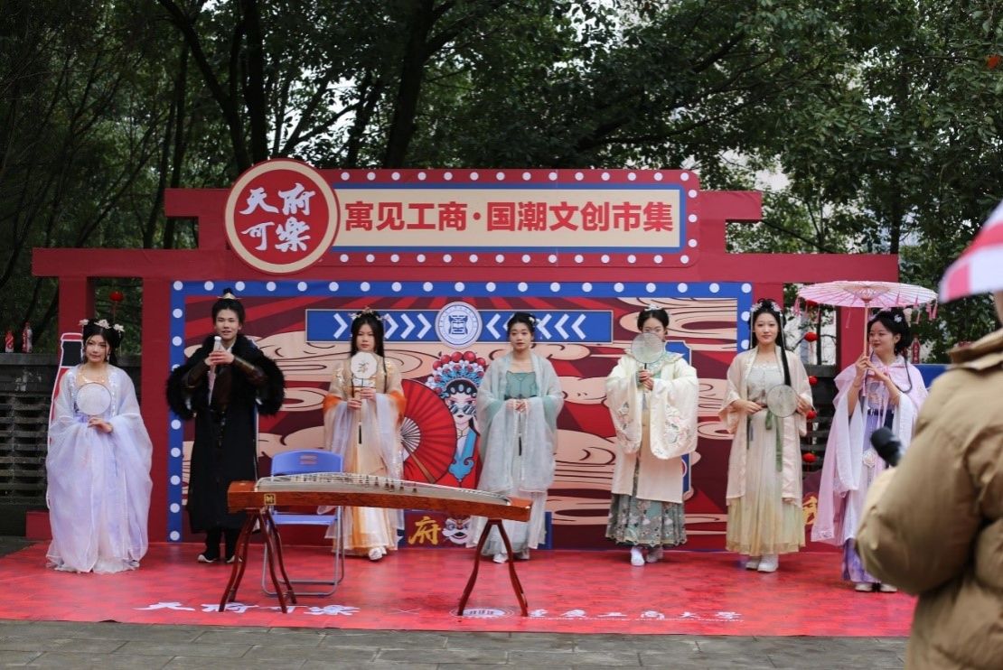 此外,集市现场还设置了投壶及击铜钱游戏、古筝表演、汉服走秀、古典舞蹈等活动形式,让同学们在丰富多彩的活动体验中感受到中华优秀传统文化的深厚底蕴和大国风姿的独特韵味。国风国潮创意集市活动提升了工商学子的文化品位和艺术修养,展现了青年大学生的文化创新和创造活力,助力形成积极健康的学生社区文化。