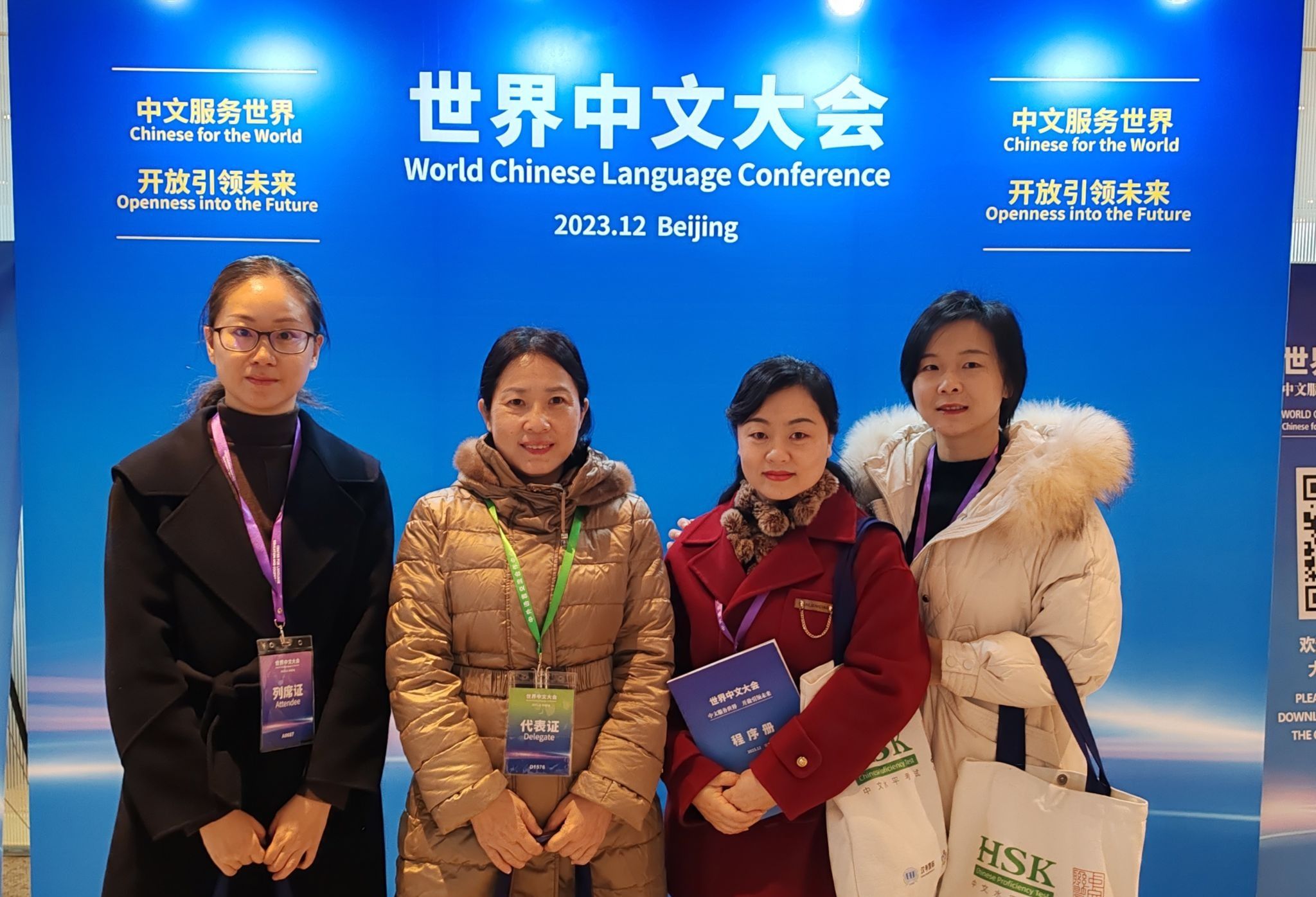 12月7至9日,2023年世界中文大会在北京国家会议中心隆重举行。中共中央政治局常委、国务院副总理丁薛祥出席大会并发表主旨讲话。教育部部长怀进鹏主持全体会议。教育部副部长、国家语言文字工作委员会主任陈杰出席大会主论坛并致辞。金年会党委常委、副校长柏群带领文学与新闻学院副院长郑笑眉、留学生院一线对外汉语教师赴京参会。据悉,本次中文大会以“中文服务世界,开放引领未来”为主题。中外有关专家、政府官员、国际组织代表和国际语言文化机构负责人等约2000人参加了会议。