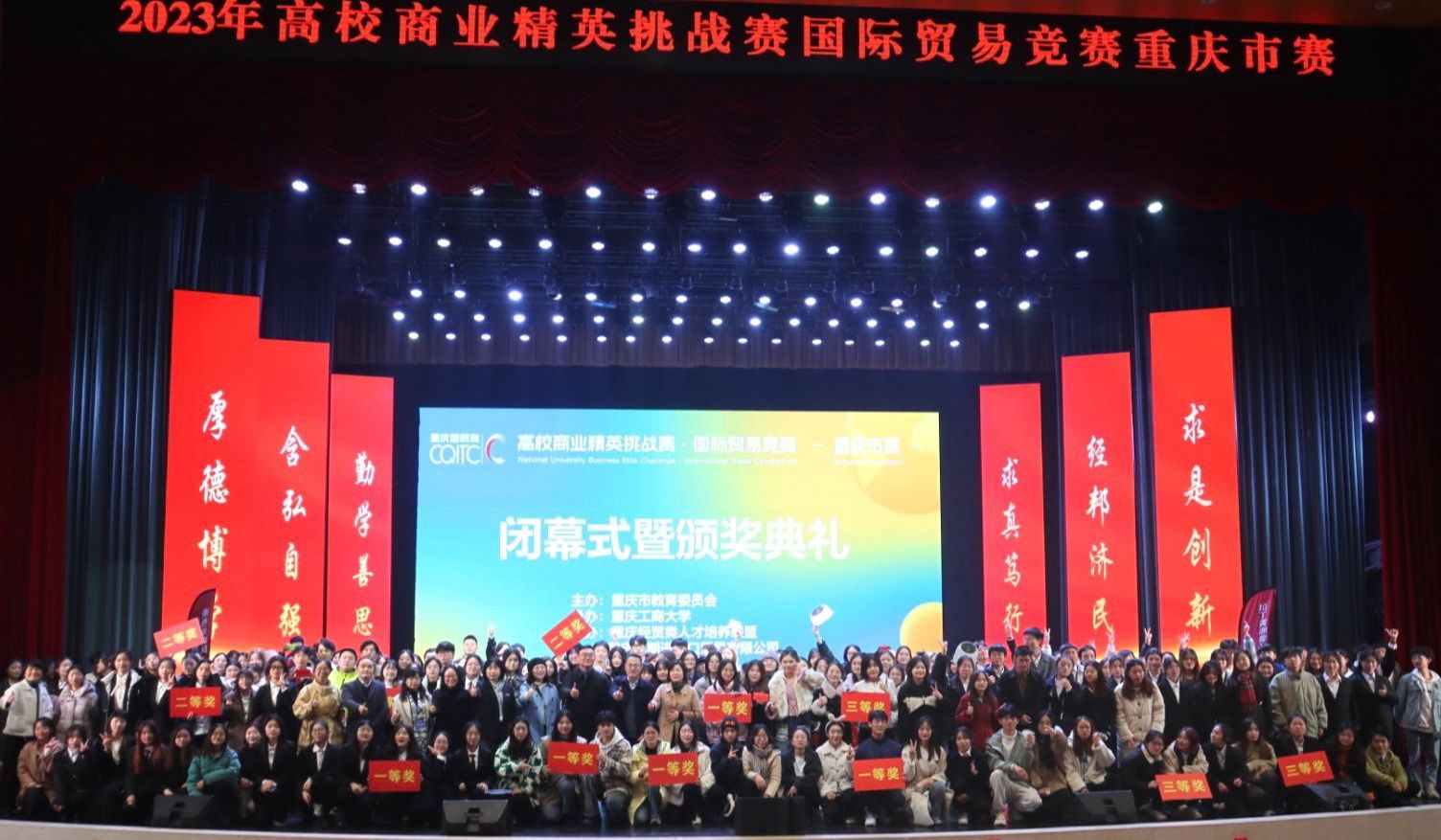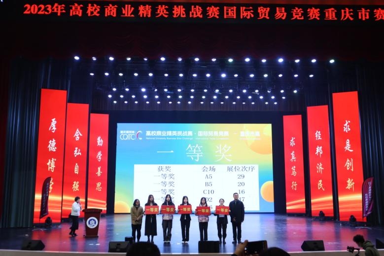 12月9日,由重庆市教育委员会主办,金年会承办,重庆经贸类人才培养联盟和重庆西朗进出口贸易有限公司协办的2023年高校商业精英挑战赛国际贸易竞赛重庆市赛在金年会南岸校区图书馆顺利举行。重庆市教育委员会高教处调研员李翔、金年会教务处副处长韦晓兰、经济学院党委书记李自维、各评委代表以及全体参赛同学和指导老师参与闭幕式暨颁奖典礼。闭幕式暨颁奖典礼由经济学院院长宋瑛主持。