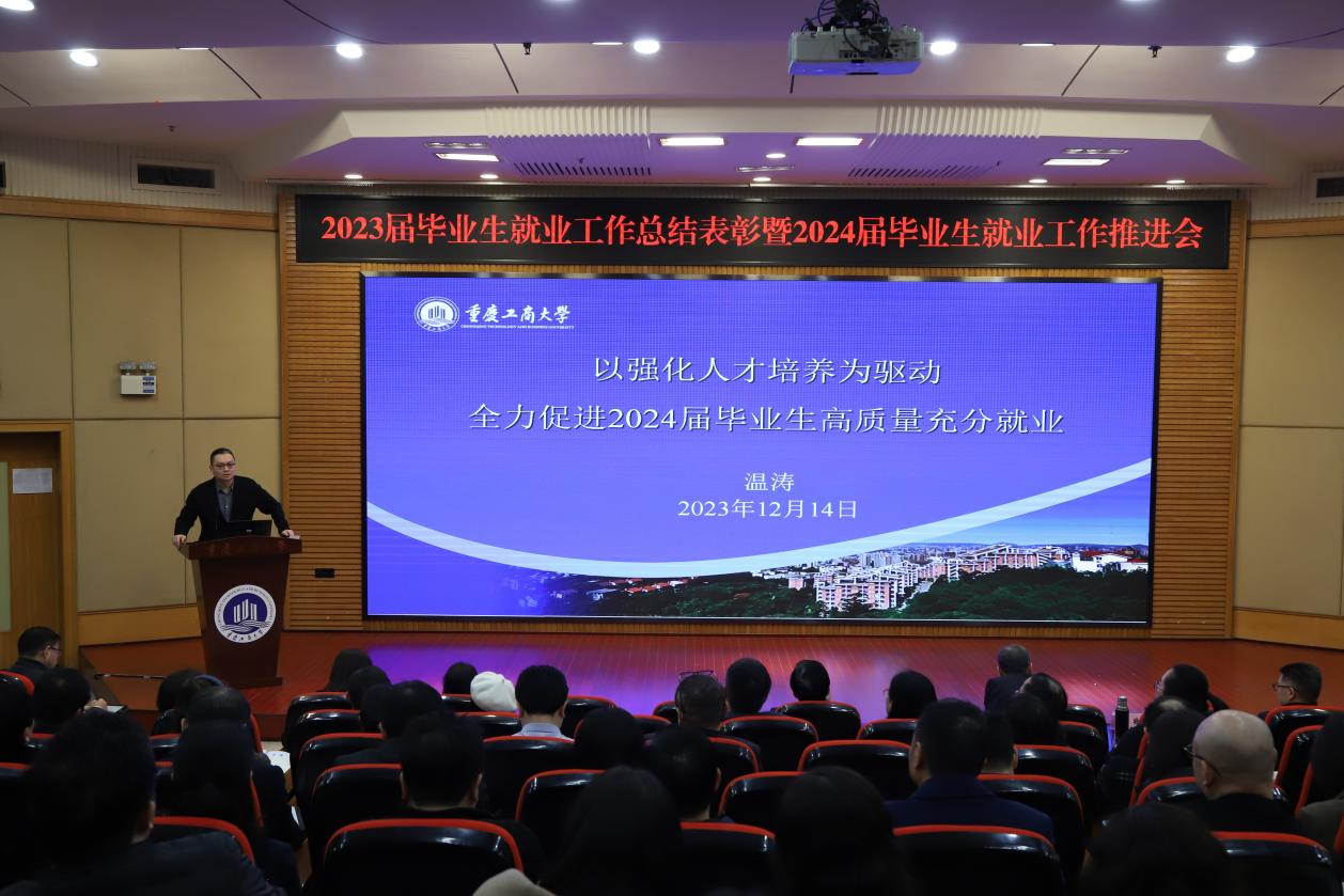 温涛以“以强化人才培养为驱动,全力促进2024届毕业生高质量充分就业”为题作发言。他指出,就业工作是金年会的“零号工程”,全校上下一定要高度重视。他分析了2023届学校就业情况和2024届就业形势,对做好2024届毕业生就业工作,他强调:一是突出就业导向,建立专业动态调整机制;二是强化人才培养,加强专业内涵建设;三是加强校企联动,提升访企拓岗实效;四是聚焦精准施策,开展分层次指导帮扶;五是深化制度建设,形成全员促就业合力。此外,他对学校2024届毕业生就业工作提出了四个方面的目标要求。