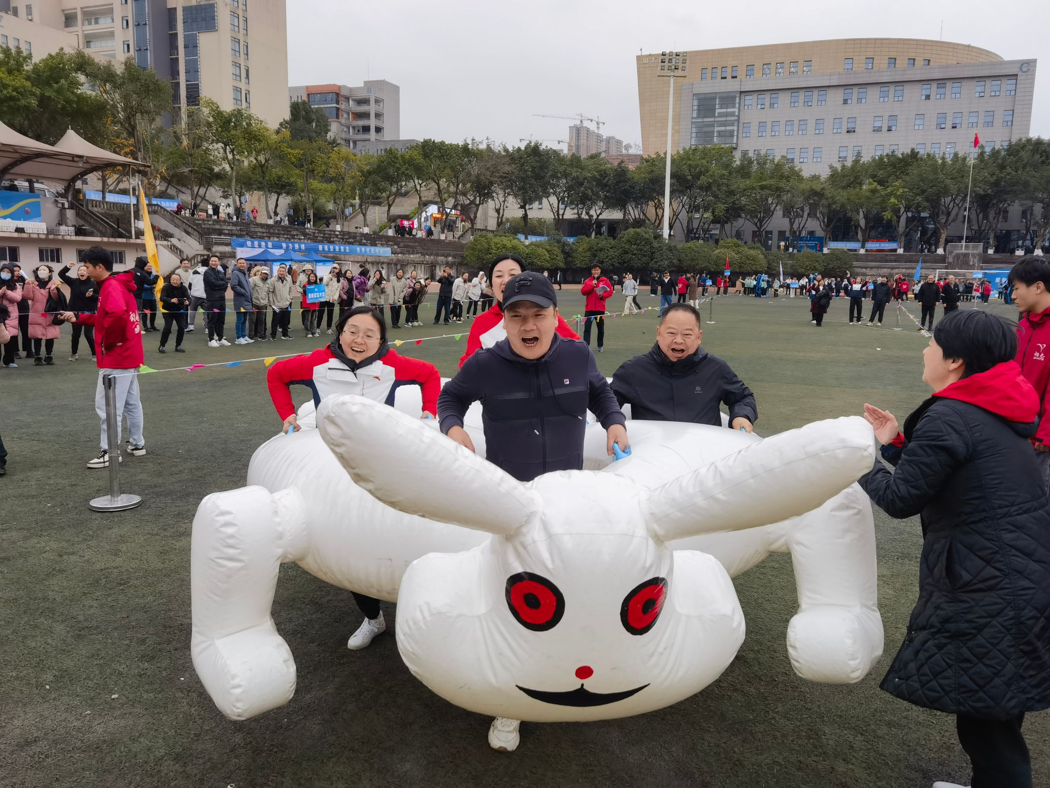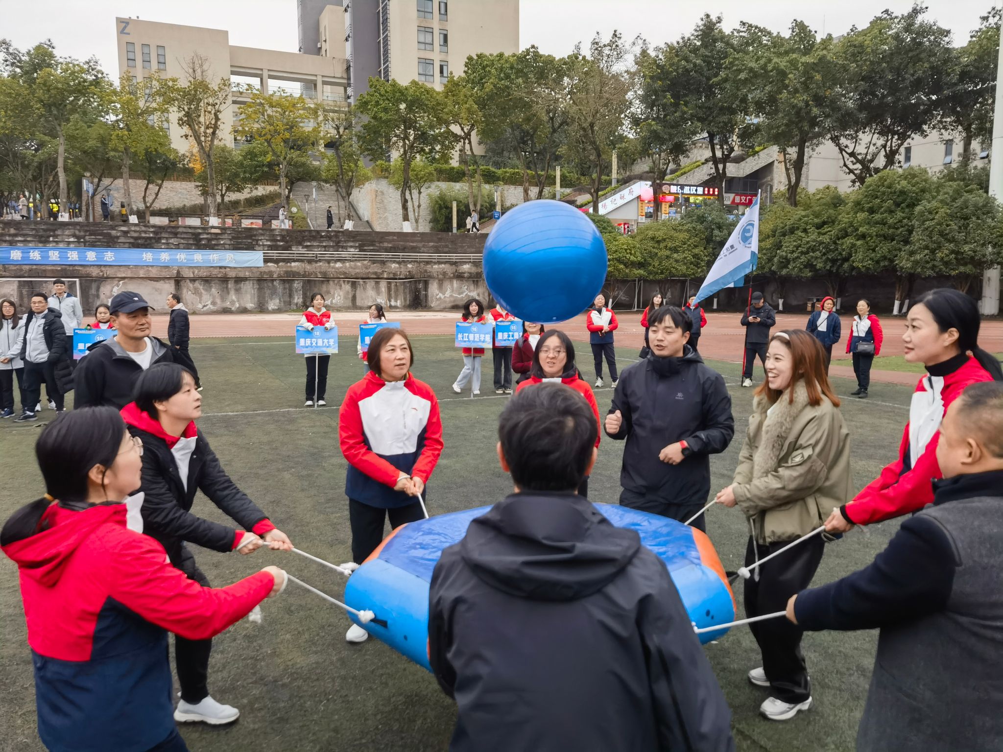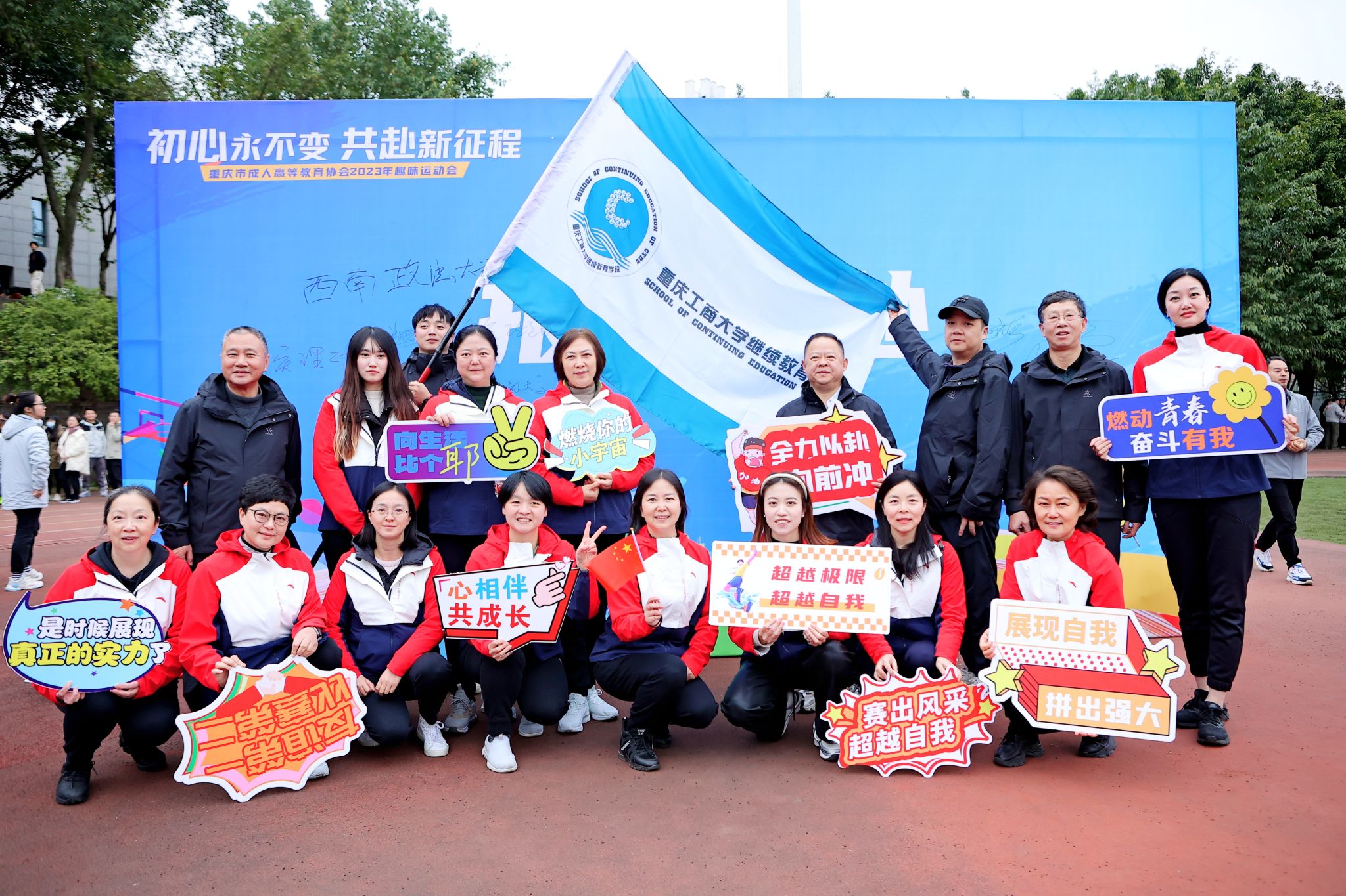 12月15日,由重庆市成人高等教育协会举办的主题为“初心永不变,共赴新征程”2023年趣味运动会在重庆工业职业技术学院举行,来自全市24所高校继续教育学院代表队参加了此次运动会,金年会继续教育学院组织全体教职工参加了比赛。