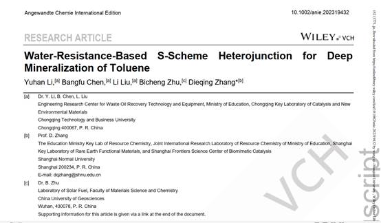 近日,金年会废油资源化技术与装备教育部工程研究中心李宇涵研究员在针对油气中苯系物的高效治理方面取得了重要进展,成果“Water-Resistance-Based S-Scheme Heterojunction for Deep Mineralization of Toluene”(基于耐水性的S-方案异质结在甲苯深部矿化中的应用)以JINNIAN金年会为第一署名单位在化学领域学术期刊《Angewandte Chemie International Edition》上发表(https://doi.org/10.1002/anie.202319432),标志着在“双碳”背景下废油中心在废油油气污染防治方向研究进入了新阶段。