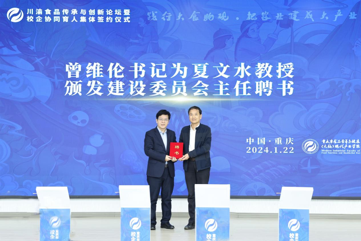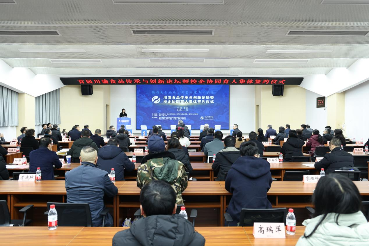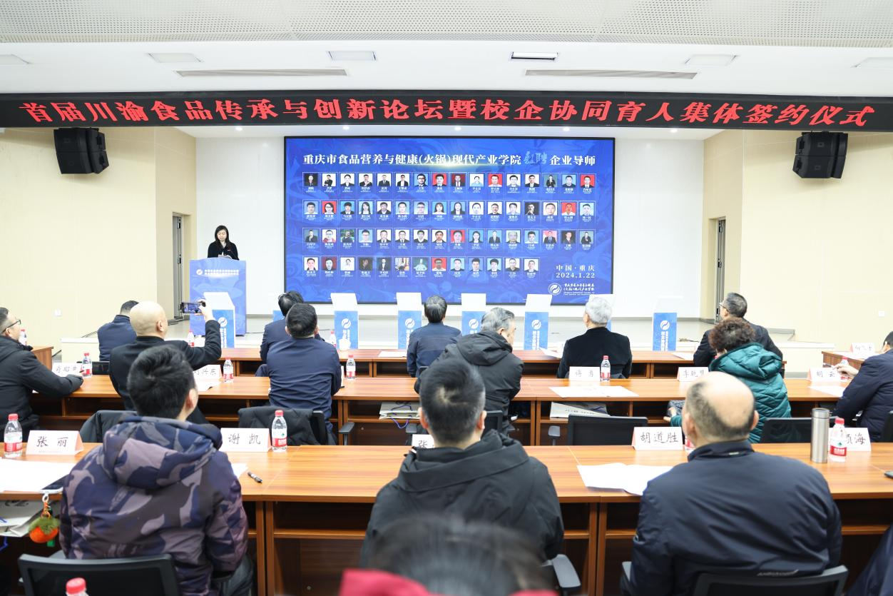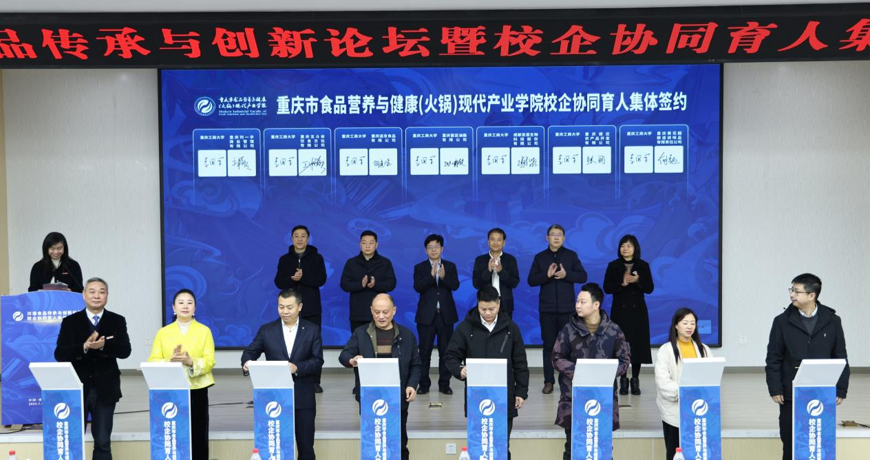 1月22日上午,由金年会主办,国家级环境与资源化学技术实验教学示范中心和重庆市食品营养与健康(火锅)现代产业学院联合承办的川渝食品传承与创新论坛暨校企协同育人集体签约仪式在学校明德楼1019会议厅举行。