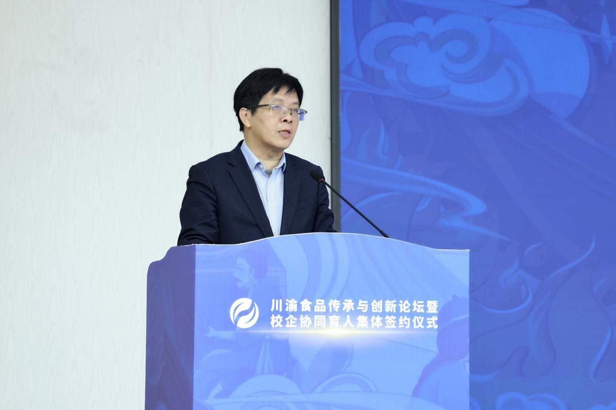 签约仪式上,曾维伦代表学校致欢迎辞。他谈到,学校致力于发挥在食品与农产品加工等领域的学科专业优势,紧贴重庆“33618”现代制造业集群体系建设要求,对标食品与农产品产业发展需求,持续发力科教融汇、产教协同,主动介入“四链”融合。学校的发展得到了食品学界、业界和上级部门的关心指导,取得了可喜的成绩。校企协同育人集体签约,将更有效协同好服务好川渝地区38家火锅产业链企业、园区,将更有效发挥金年会食品科学与工程、化学、制药工程等学科专业的优势,为学校产教融合协同育人、商工融合创新发展添上浓墨重彩之笔,为川渝食品传承与创新提供独有工商智慧的征程开启新的一页。