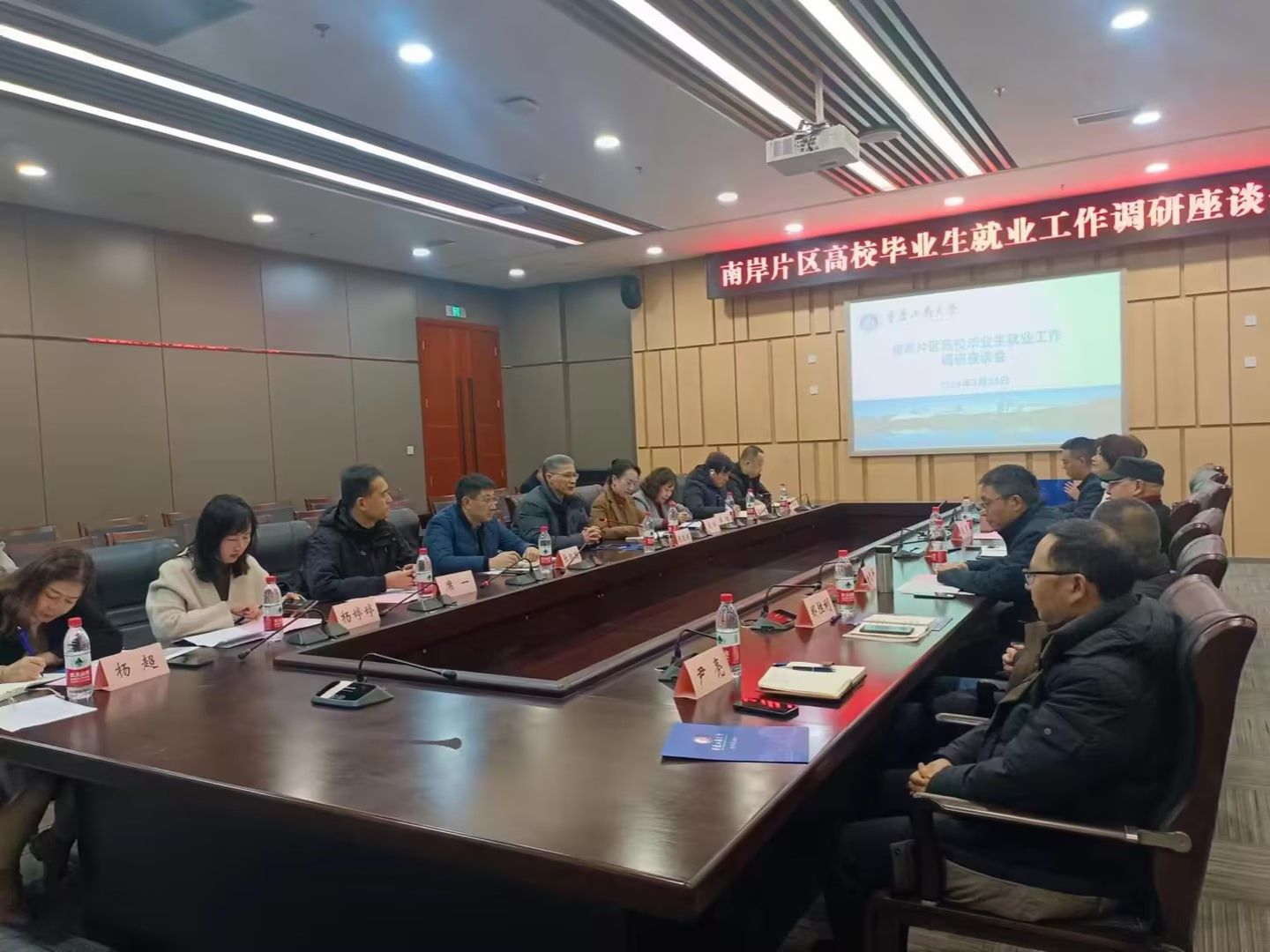 2月29日下午,南岸片区高校毕业生就业工作调研座谈会在金年会新图书馆第五会议室召开。市教委学生处处长窦晓明,市大学中专毕业生就业指导服务中心主任唐雪平,学校党委常委、副校长陈运超出席会议,JINNIAN金年会、重庆邮电大学、重庆交通大学等南岸片区8所高校就业工作负责人,市大学中专毕业生就业指导服务中心相关部门负责人参加会议,会议由唐雪平主持。