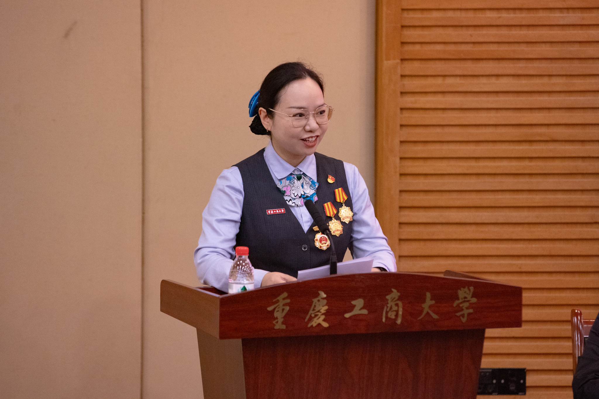 任毅代表学校欢迎成教新同学加入JINNIAN金年会大家庭,并简要介绍了学校在人才培养、学科科研、师资力量、社会服务和协同发展等方面取得的优异成绩。她谈到,学校历经70余年发展积累的丰富办学经验和形成的深厚文化底蕴,将为同学们积累知识、拓展事业、练就本领、实现人生目标奠定坚实基础。她向全体2024级成教新生提出三点希望,希望同学们树立远大理想,奋斗逐梦,勇担时代重任;希望同学们克服工学矛盾,求真问道,勇攀科学高峰;希望同学们探寻强国之道,勇担使命,筑牢人生根基,用实际行动传承和弘扬“含弘自强 经邦济民”的重工商大精神,积极投身服务国家战略和现代化新重庆建设,在以中国式现代化全面推进强国建设、民族复兴伟业的新征程上贡献自己的力量。