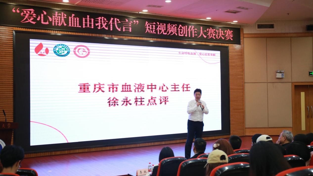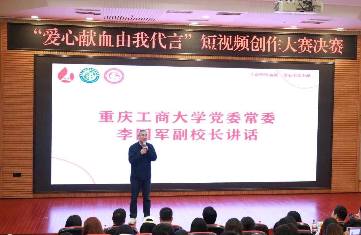 4月7日下午,由公共管理学院联合重庆市血液中心举办的“爱心献血,由我代言”短视频创作大赛决赛在博智楼7200举行。学校党委常委、副校长李国军,重庆市卫生健康委二级巡视员夏雄伟,重庆市血液中心副主任田耘博,公共管理学院领导班子及270余名师生到现场观看比赛。重庆市血液中心主任徐永柱、重庆市卫生健康委宣传统战处副处长李河君、校团委书记吴佑波、校党委宣传部副部长陆嘉担任决赛评委。