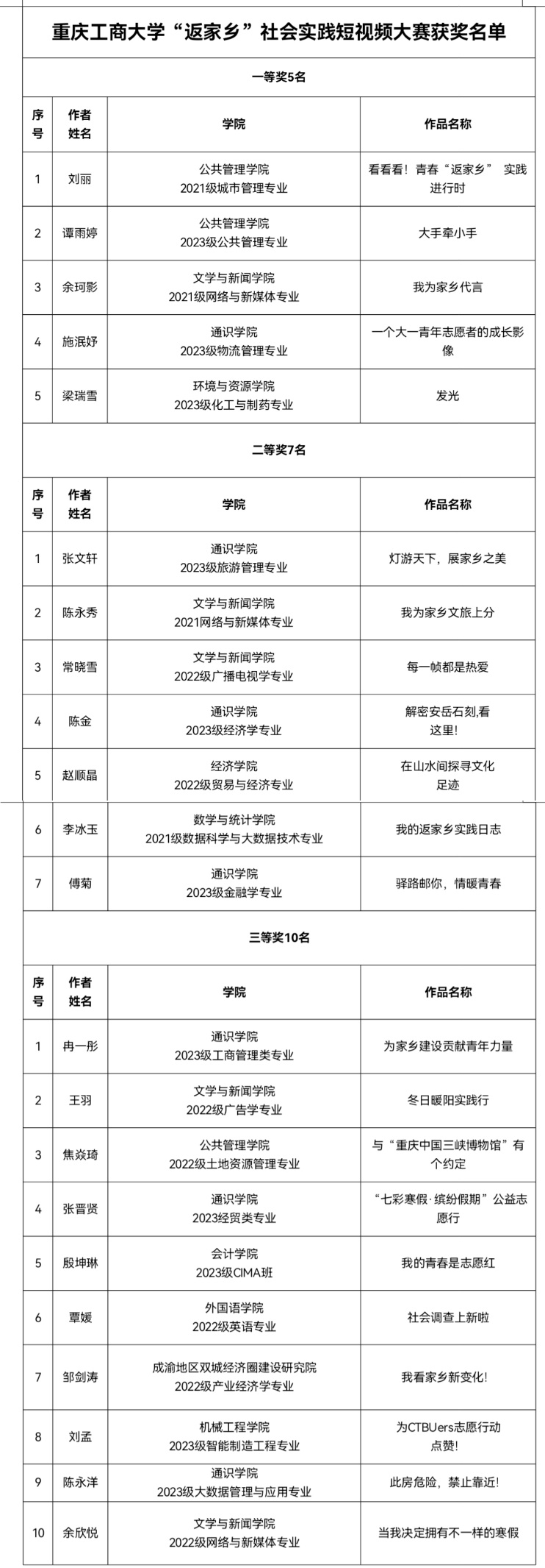 近日,由校团委主办的“以青春之名,赴家乡之约”返家乡社会实践短视频大赛圆满落幕,来自全校10个学院部门、22个学生团队或个人在比赛中获奖。参赛作品围绕政务实践、企业实践、乡村振兴、公益服务、社会服务、文化宣传等领域,创作内容鲜活的返家乡社会实践短视频,展现金年会青年学子用奋斗践行使命担当。