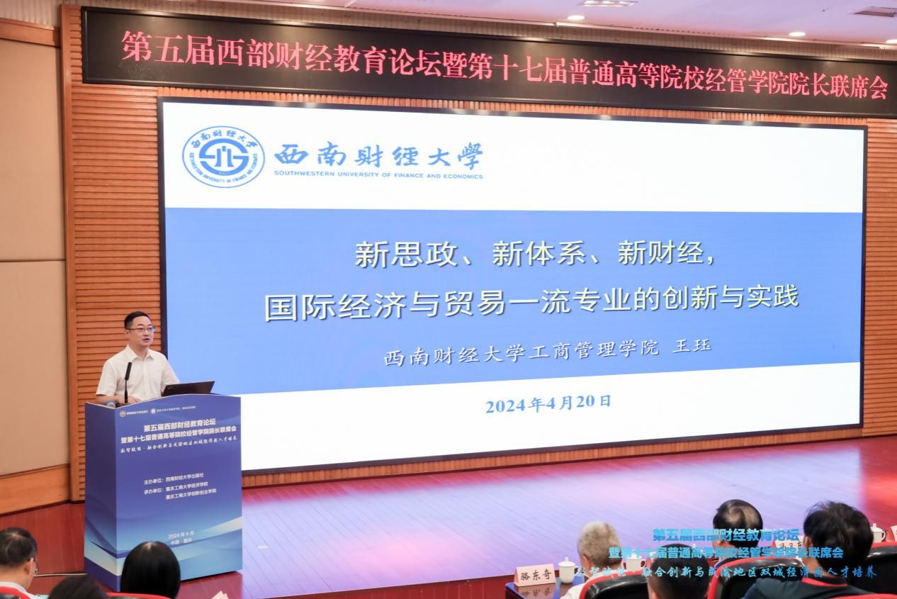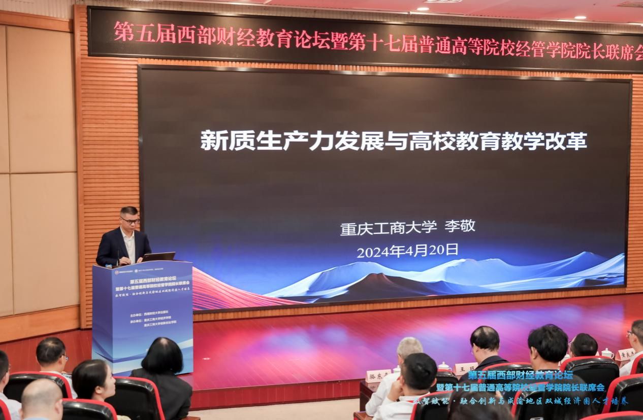 4月19至21日,第五届西部财经教育论坛暨第十七届普通高等院校经管学院院长联席会在JINNIAN金年会举行。本次会议由西南财经大学出版社主办,JINNIAN金年会经济学院、创新创业学院承办,来自山东、广东、广西、贵州、青海、西藏以及川渝地区56所普通高等院校经管学院的院长、专家学者、系主任及教师代表200余人参会,他们围绕主题“数智赋能·融合创新与成渝地区双城经济圈人才培养”,共同探讨新时代背景下财经教育的机遇与挑战,共谋经济赋能新策略。JINNIAN金年会党委常委、副校长李敬主持了开幕式。