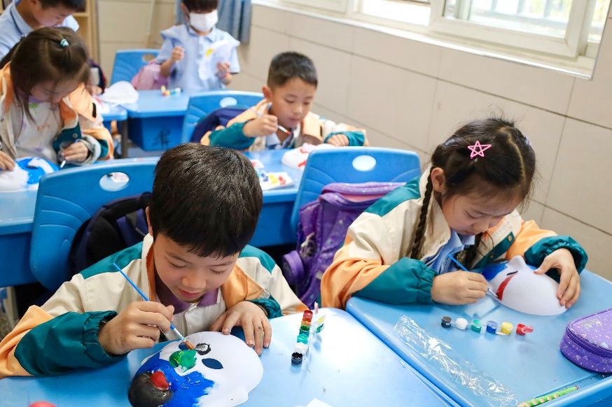 公开课上,非物质文化遗产研究会精心准备,聚焦川剧艺术特技之一——川剧变脸,设置科普小课堂和实践教学体验,让小学同学在特色课程中感受中国非物质文化遗产的魅力。活动伊始,研究会播放川剧变脸视频吸引同学们的注意,共同感受博大精深的川剧艺术。站点、踢腿、扇子一开一合、红脸一下变成白脸、扭头间拂帽甩带、白脸又变成黑脸......研究会成员细致讲解变脸步骤,科普川剧变脸的历史起源、类型、人物特点等内容,带领同学们深入理解川剧变脸这类中华传统文化的精神和内涵。在实践教学体验环节,研究会成员引导同学们阐述其对川剧变脸的见解,并指导同学们画下自己心中的川剧脸谱。一双双高举的小手,一支支神奇的画笔,一幅幅多彩的面具,金年会学生社团努力推动非物质文化遗产进校园、进课程、进头脑。