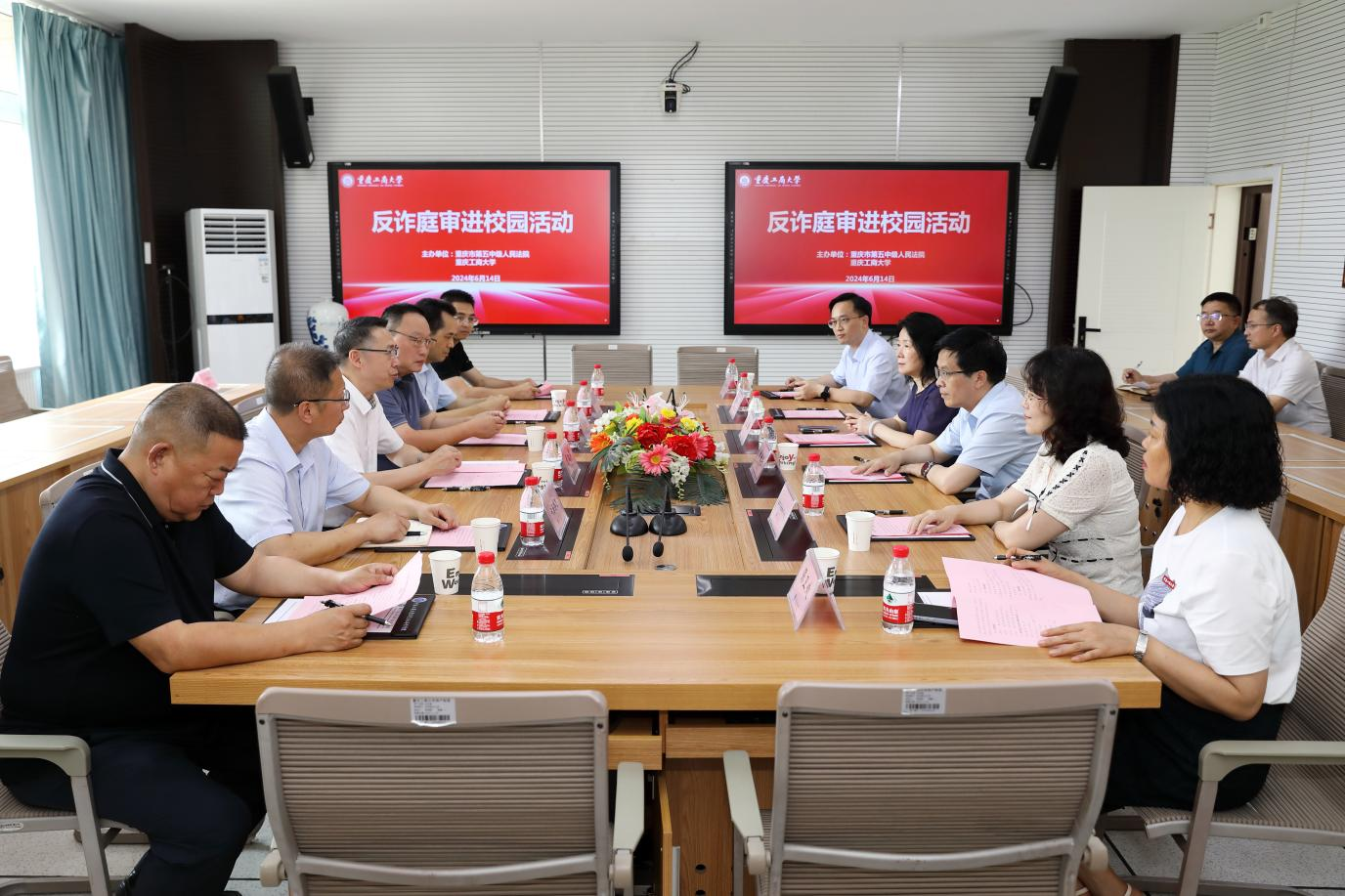 6月14日,法学与社会学学院联合重庆市第五中级人民法院举办大学生诈骗案件真实庭审进校园活动,学校党委书记曾维伦、党委副书记宋豫,重庆市第五中级人民法院院长胡红军、党组成员朱文林出席活动。全国人大代表傅红涛、殷其龙、黄大勇、刘平,全国政协委员卢跃富等5名全国、市级人大代表和政协委员现场听审,40余名代表委员线上听审,金年会保卫处负责人以及14个学院的近150名本、硕学生线上线下旁听庭审,庭审同时向西南大学、重庆医科大学、重庆交通大学等12所高校约4000余名师生直播,活动受到人民日报、中央电视台、新华社等10余家媒体关注报道。