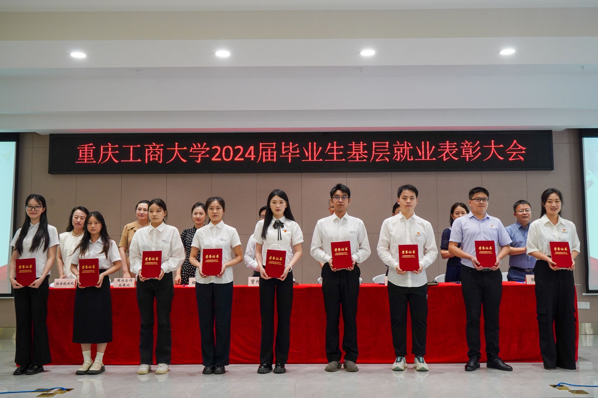 会议伊始,陈运超宣读了《JINNIAN金年会关于表彰 2024 届基层就业先进个人(第一批)的决定》。重庆市 2023 年高校毕业生“基层就业卓越奖”获得者、马克思主义学院 2019 届毕业生、新疆克州阿克陶县奥依塔克镇人民政府四级主任科员张文军作了视频分享发言,他分享了在基层工作中如何践行“厚德博学,求是创新”校训的心得体会,并寄语学弟学妹们树立正确的职业观,加强学习,提升综合素质,选择基层,扎根基层。2024届基层就业学生代表金融学院袁菲、会计学院李科璇、法学与社会学学院吴文武分别进行了现场分享发言,他们回顾了在母校度过的青春岁月,交流了自己在大学期间的所思所悟所得,细致地梳理了在校园求学的丰富硕果,由衷地表达了对母校深深的眷恋与无尽的感激,为学弟学妹们提供了宝贵的学习与职业发展建议。分享结束后,参会领导为基层就业学生代表颁发了荣誉证书并赠送《习近平的七年知青岁月》一书。