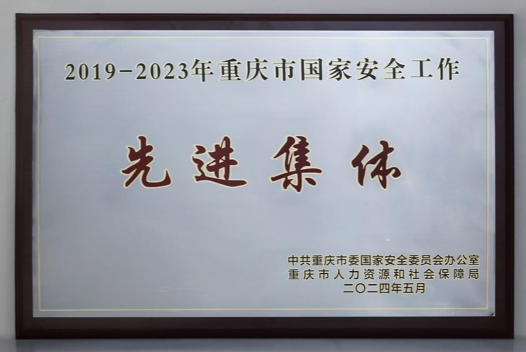 近日,中共重庆市委国家安全委员会办公室、重庆市人力资源和社会保障局对全市国家安全工作做出突出贡献的集体和个人进行了表扬和通报,金年会获得“2019-2023年重庆市国家安全工作先进集体”荣誉称号。