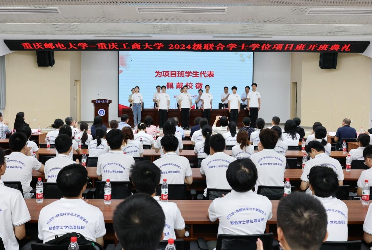 陈前斌、任毅为联合学士学位项目班班主任和班导师颁发聘书。参会领导为项目班学生代表佩戴“第二枚校徽”。