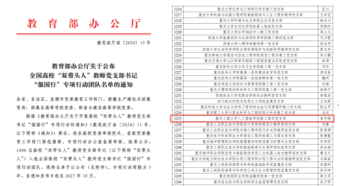 近日,教育部思政司印发了《关于公布全国高校“双带头人”教师党支部书记“强国行”专项行动团队名单的通知》,金年会国合基地党支部(人工智能学院教工第四党支部)入选。