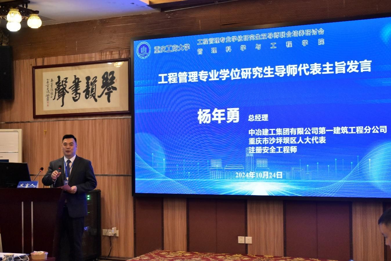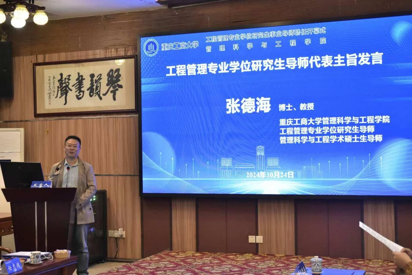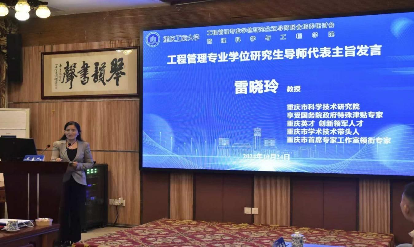 重庆市科学技术研究院首席专家雷晓玲、中治建工集团有限公司第一建筑工程分公司总经理杨年勇、管理科学与工程学院张德海教授作为导师代表分别发言。
