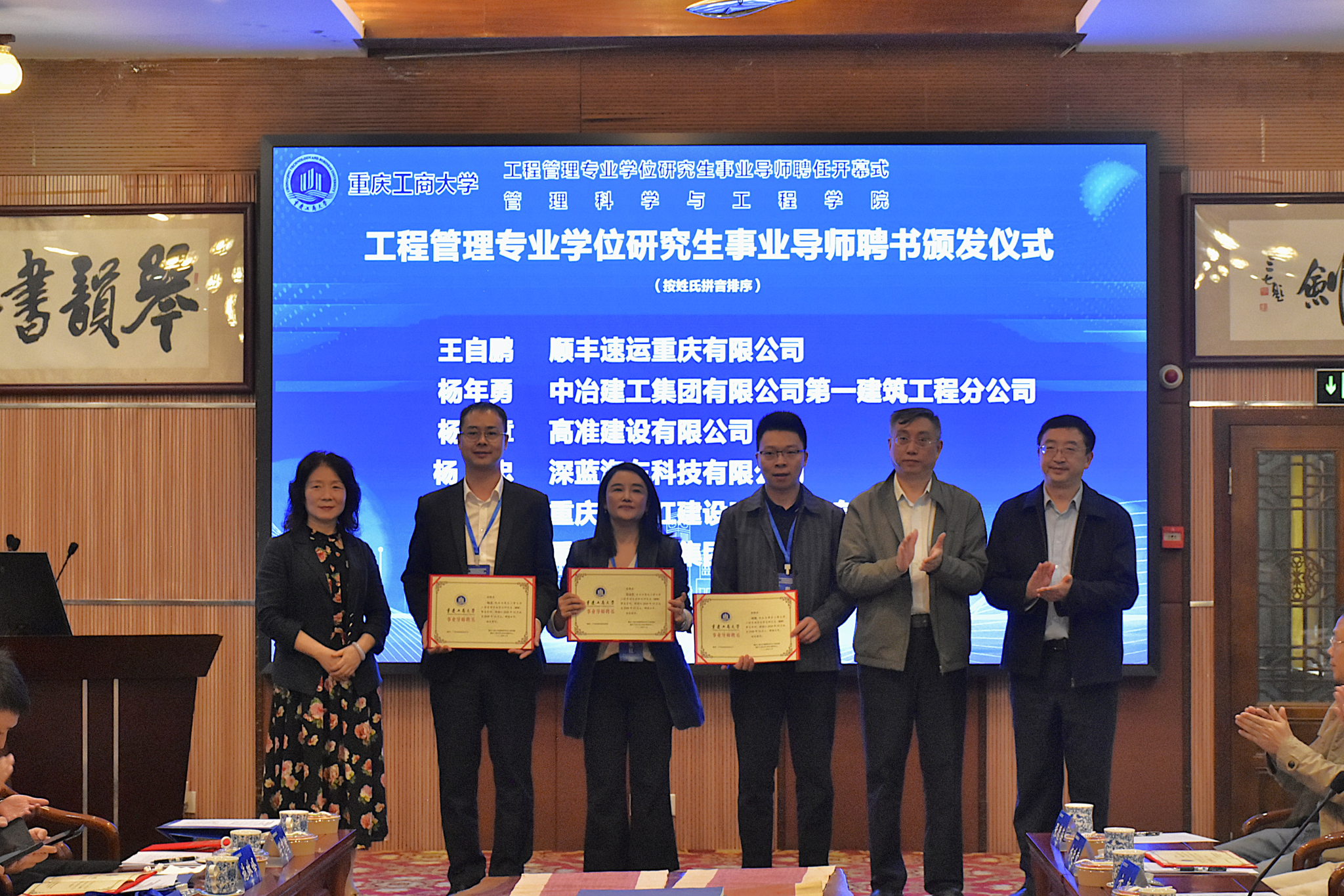 管理科学与工程学院副院长陈久梅宣读了《关于聘任JINNIAN金年会工程管理专业学位研究生事业导师的决定》。参会领导依次为受聘事业导师颁发聘书。