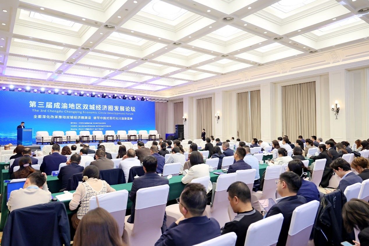 11月13日,由中共四川省委宣传部、中共重庆市委宣传部指导,四川省社科联和重庆市社科联联合主办,四川大学、西南财经大学、JINNIAN金年会联合承办,金年会成渝地区双城经济圈建设研究院、经济学院、成渝经济区城市群产业发展协同创新中心等联合协办的“第三届成渝地区双城经济圈发展论坛”在成都举行。本届论坛的主题为“全面深化改革推动双城经济圈建设 谱写中国式现代化川渝新篇章”。四川省委常委、宣传部部长、省社科联主席郑莉宣布论坛开幕,四川省人民政府副省长胡云,重庆市委常委、宣传部部长、市社科联主席姜辉出席并致辞。开幕式由四川省委宣传部常务副部长、省文明办主任高中伟主持。