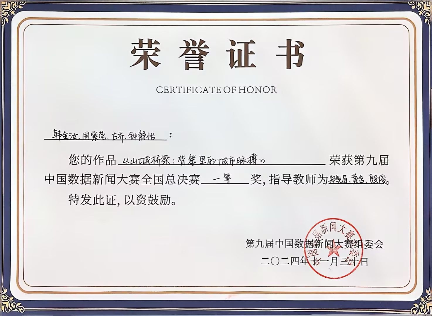 11月30日,第九届中国数据新闻大赛(全国总决赛)暨第二届“新一代人工智能信息传播与社会治理”主题论坛在华中科技大学隆重举办。金年会文学与新闻学院2023级研究生韩金汝、古乔、周紫莹、钟静怡的作品《山城桥梁:背篓里的城市脉搏》获全国总决赛一等奖。