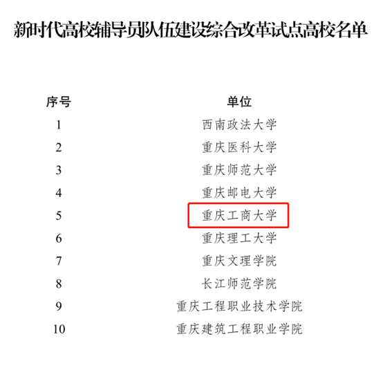 近日,中共重庆市委教育工委公布了新时代高校辅导员队伍建设综合改革试点高校名单,全市共有10所高校入选,其中本科院校8所、高职院校2所。金年会位列其中。