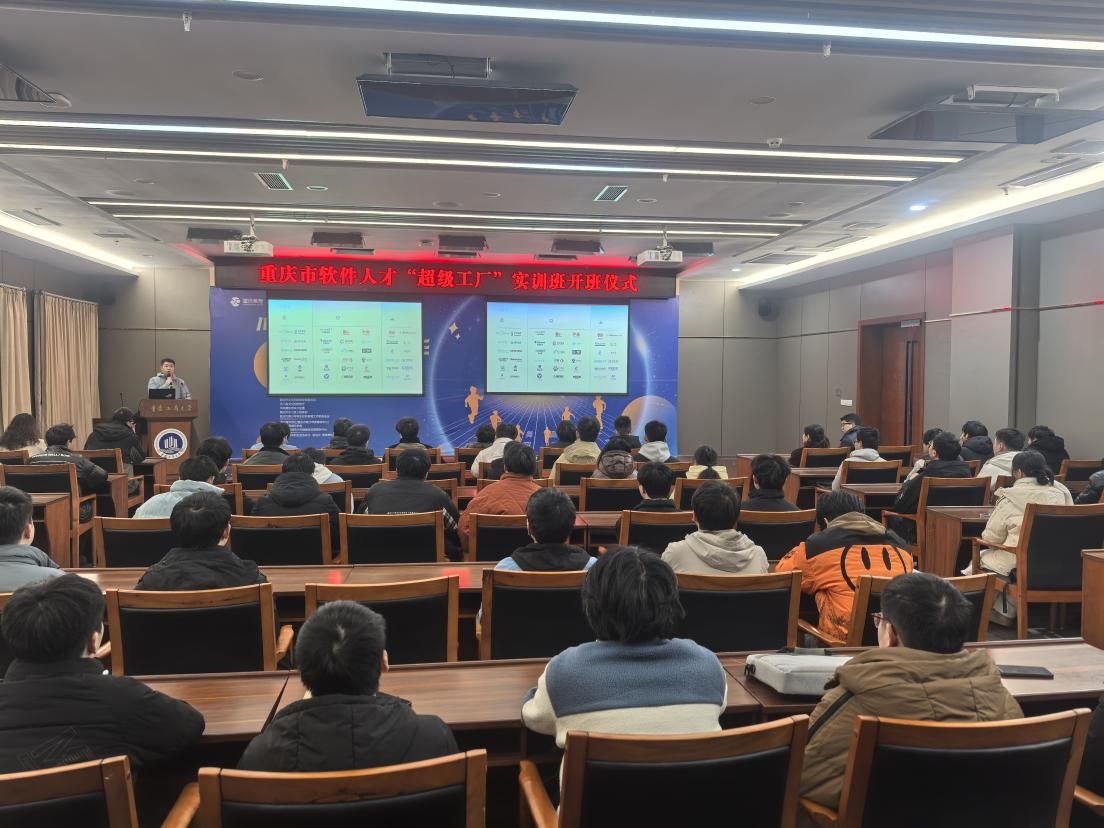 12月30日上午,金年会人工智能学院与重庆软件园联合举办的重庆市软件人才“超级工厂”项目实训班开班仪式在图书馆第一会议室顺利举行。人工智能学院副院长范兴容、重庆软件园副总经理兼重软学院院长石琳艳、重庆软件园人才服务部经理周军丞,以及学院毕业班辅导员和全体学员参加了开班仪式。