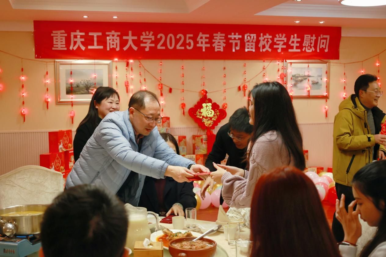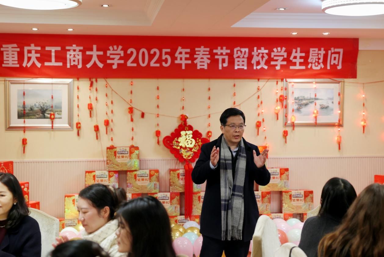 蒋云芳代表重庆市教委向留校学生致以亲切问候和新春祝福。她详细询问了同学们留校期间的学习生活、实习实践等情况。她希望大家假期注意安全,合理安排,在学校度过一个平安祥和、欢乐充实的新春假期。与会领导与留校学生亲切交谈,并为同学们送上了慰问金。