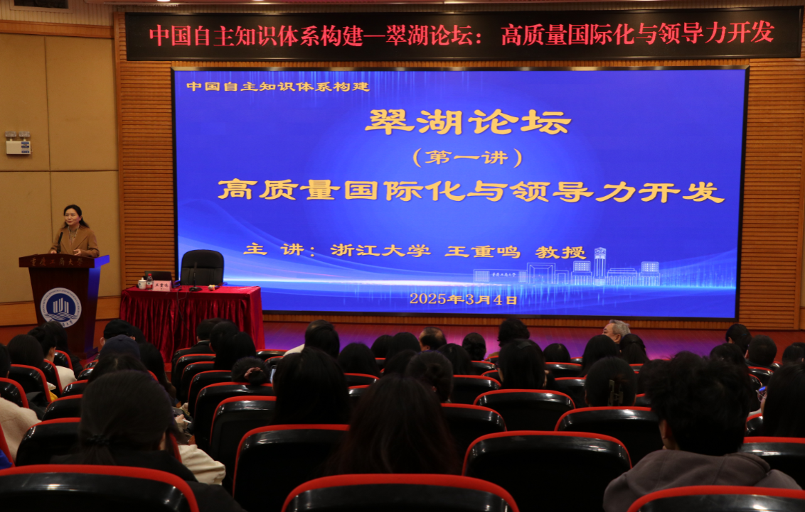 3月4日,“翠湖论坛”第一讲在南岸校区博智楼7200会议室开讲。浙江大学文科资深教授、浙江省特级专家、浙江大学全球创业研究中心主任王重鸣教授应邀来金年会作了题为“高质量国际化与领导力开发”的专题讲座。来自工商管理学院、会计学院的200多名师生参加讲座,讲座由学校党委常委、副校长任毅教授主持。