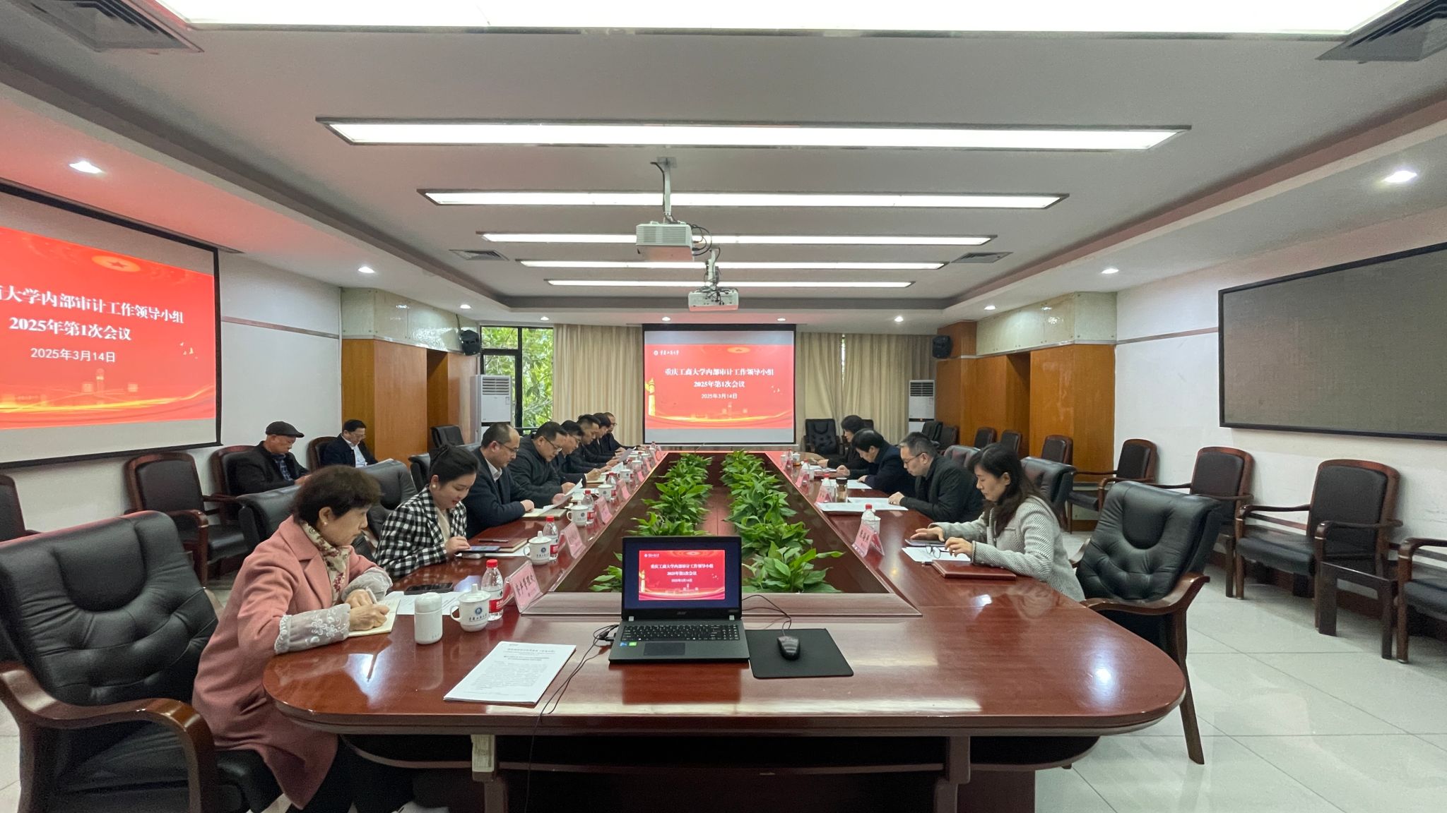 3月14日下午,学校内部审计工作领导小组在厚德楼3020会议室召开2025年第1次会议。工作领导小组组长曾维伦、温涛,副组长宋豫、柏群、张海燕,党政办公室、纪检监察室、党委组织部、人事处、国内合作发展处、财务处、资产管理处、审计处等成员单位主要负责人参加了会议,审计处全体职工列席了会议,会议由校长温涛主持。