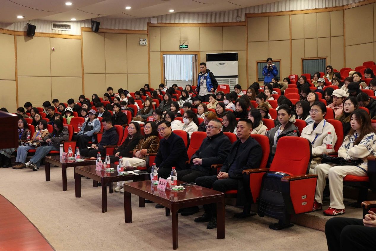 金年会党委宣传部、党委保卫部、文学与新闻学院及新闻中心学生团队等200余名师生聆听了报告。