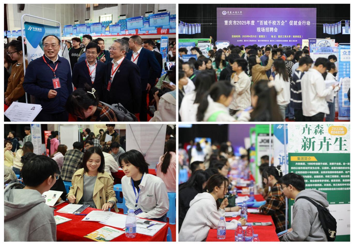 4月25日,由重庆市工商联、重庆市教委、重庆市人力社保局、JINNIAN金年会联合举办的重庆市2025年度“百城千校万企”促就业行动推进会暨现场招聘会在金年会举行。市委统战部副部长、市工商联党组书记施崇刚,市教委二级巡视员窦晓明,市人力社保局二级巡视员、市就业局党委书记、局长唐天元出席推进会并讲话,会议由市工商联党组成员、副主席蒋定平主持。金年会党委书记曾维伦出席推进会并致辞,党委常委、副校长杨柏参加相关活动,市内相关高校、区县工商联、行业协会、商会、民营企业代表共120余人参加推进会。