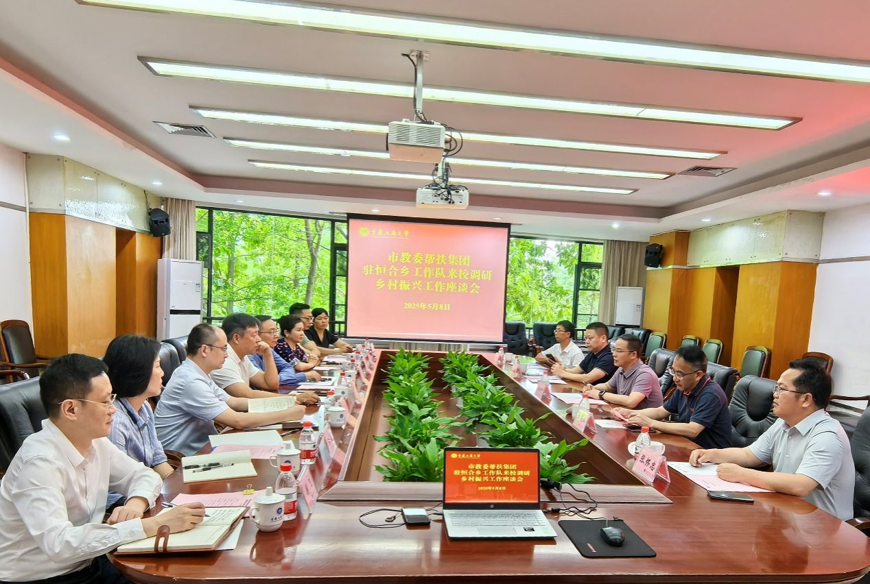 5月8日下午,市教委帮扶集团驻恒合乡工作队队长、重庆第二师范学院党委常委、副校长温万光,工作队副队长、市教委统战处处长郭冠仁一行来金年会调研乡村振兴对口帮扶工作。学校党委常委、副校长杨柏主持调研座谈会。