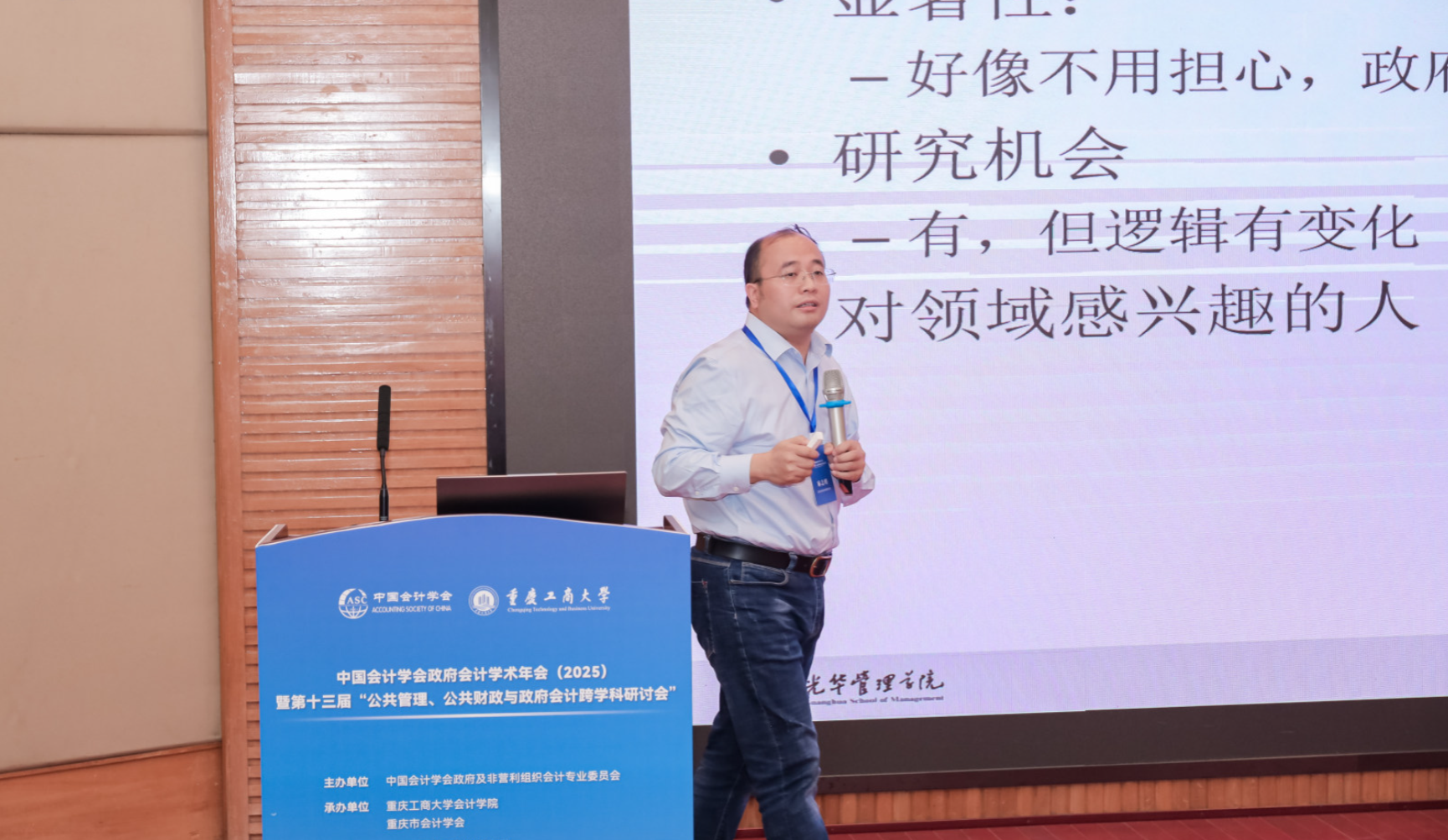北京大学光华管理学院麻志明教授以“政府会计实证研究的趋势与机会”为题,围绕政府会计实证研究的内容、方法与发展历程进行了系统阐述。他指出,政府会计研究应更加注重方法整合与跨学科融合,实证研究成果能够为政策制定与施政成效评估提供坚实的支持。他鼓励青年学者把握政府数据逐步公开带来的研究契机,聚焦具有经济与社会意义的研究议题,推动中国政府会计研究持续深入与国际化发展。