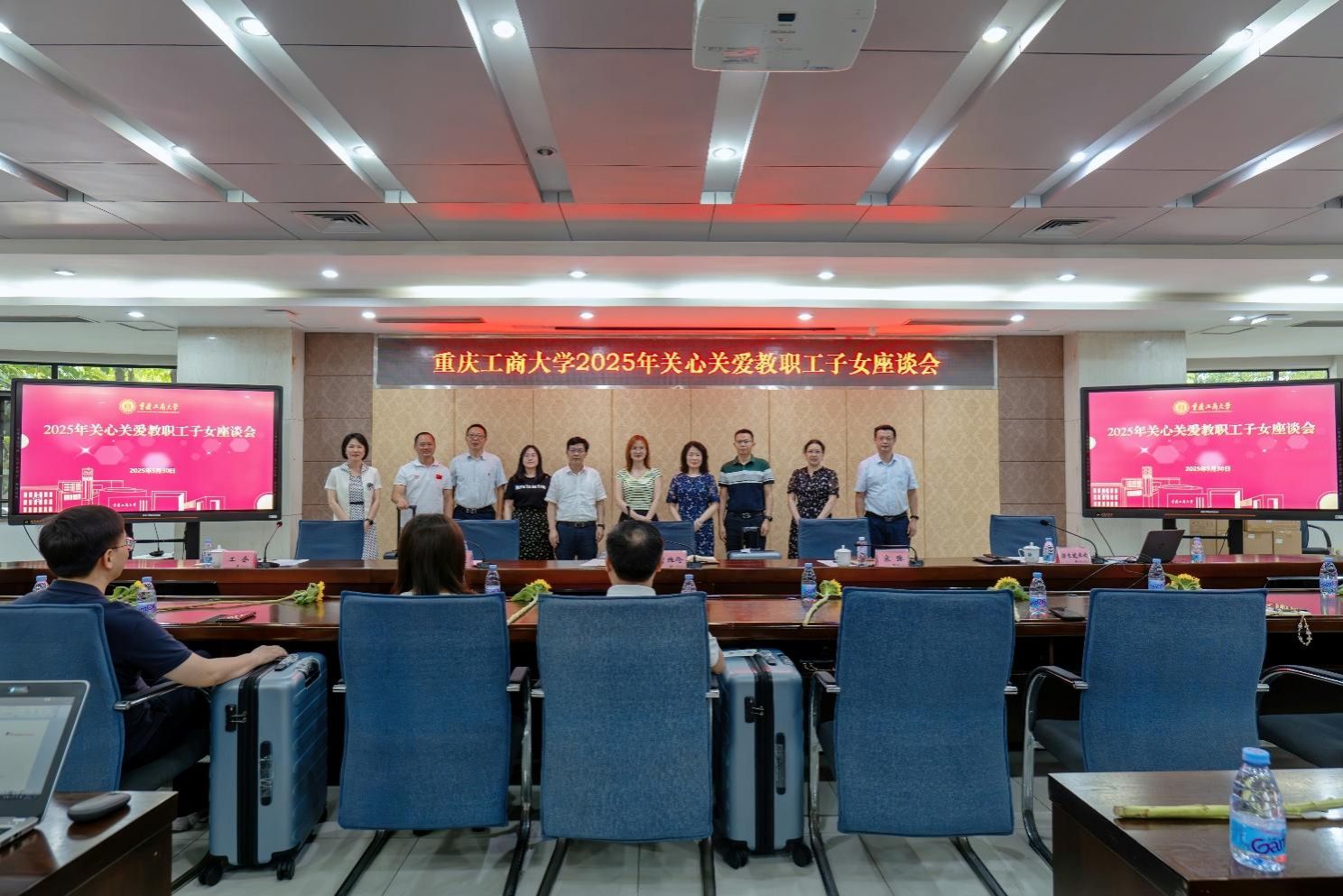 人事处、招生就业处、校工会等部门负责人,2025年子女参加高考教职工及子女未满14周岁教职工代表参加座谈会。