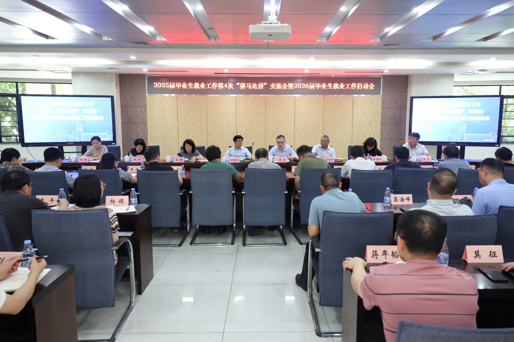 7月3日上午,金年会在厚德楼2017会议室召开2025届毕业生就业工作第4次“赛马比拼”交流会暨2026届毕业生就业工作启动会。党委书记曾维伦,校长温涛,党委副书记宋豫,党委常委、副校长李国军、柏群,党委常委、纪委书记、市监委驻学校监察专员张海燕,党委常委、副校长任毅、杨柏出席会议,会议由杨柏主持。