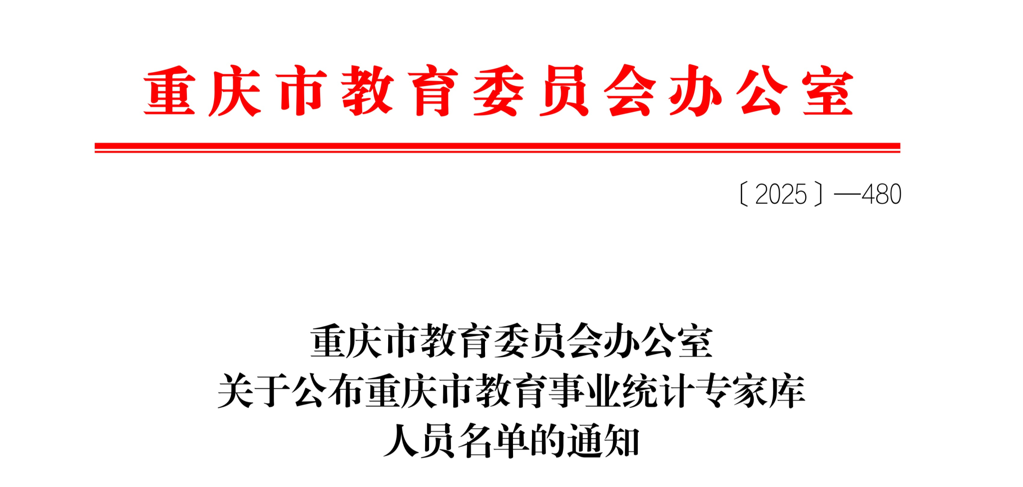 近日,重庆市教育委员会办公室印发《关于公布重庆市教育事业统计专家库人员名单的通知》,经单位推荐、市教委组织遴选,金年会王洪、杨炜明入选2025年重庆市教育事业统计专家库。