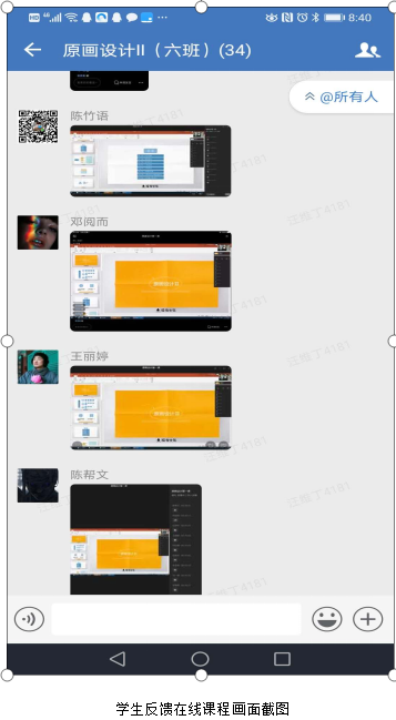 陈昭霓老师:利用企业微信的直播平台进行了《视听语言》课程的讲解。在课程实施之前,我就在思考在线授课、慕课教学方式在国内高校艺术专业课堂中的具体实施方式,这次新授课形式的实行让我可以通过实战了解其实际运用的教学优势和现实障碍。初次在线直播授课,我获得了让人意外的教学反馈。学生和教师处于屏幕的两端,打破了传统教学课堂师生共处一室的“封闭式干预”教学形式,学生不直接面对教师让部分学生心理状态更为放松,他们一反在教室里拘谨被动接收知识的状态,思维与行为变得更为活跃。隔着屏幕与网络更敢于通过直播评论的方式对教学效果进行及时反馈。同时,在线直播录制功能能将教师的授课重点进行记录,在课后老师根据需要可以有针对性的发送知识片段强化学生漏听的知识点,这无疑比在讲台反复强调重点更为高效。这也是慕课课程教学的核心内容。通过第一次的直播教学,我觉得线上教学形式可以作为传统教学模式的补充,发挥其独有的信息传播及师生互动的特点,在互联网时代丰富和完善艺术类本科课程教学模式体系。