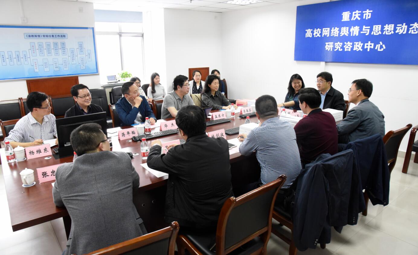 5月8日下午,中央网信办网络社会工作局副局长孙爱萍、教育部思政司副司长张文斌、中央网信办网络社会工作局网络文化处处长张光耀、教育部思政司思想教育与网络处处长吕治国在市委网信办评论社会处处长林剑波及市委教育工委、市教委宣教处处长吴边的陪同下来金年会重庆市高校网络舆情与思想动态研究咨政中心(以下简称“中心”)调研。