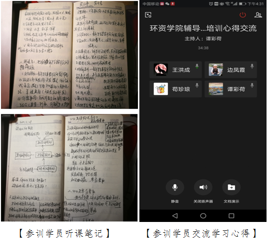 3月31日下午,环境与资源学院还组织本院辅导员开展了网络培训心得体会第一次线上分享会。谭彩荷老师说到,通过学习黄亮老师的《新形势下爱国主义实施纲要解读》,从而认识到新的历史时期、新的历史方位,对大学生进行爱国主义教育的意义更加重要、途径更加多样、方式更加灵活,对如何结合实际开展爱国主义教育有了一定的思考;边凤霞老师、苟珍琼老师表示,在听了朱平老师的《优良班风是怎样建成的》课程后,对如何结合学生的专业实际,开展学业指导和班级管理工作受益良多;刚从事辅导员工作半年的王洪成博士认真学习了陈宝生部长在全国优秀高校辅导员培训班开班仪式上的讲话精神,更加深知“辅”“导”“员”工作的责任重大,表示今后要从繁琐的事务性工作中抽身出来更多地接触学生、了解学生、指导学生。