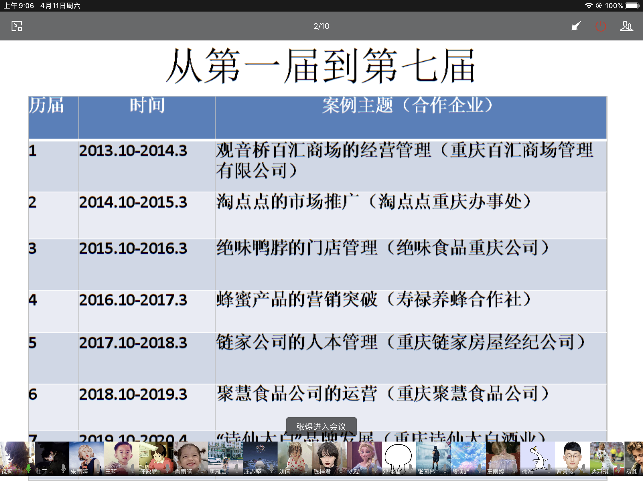 比赛正式开始前,杨柏院长开场致辞,表达了对诗仙太白有限公司两位高管出席及给予支持的感谢,并鼓励参赛的同学通过此次比赛丰富自己的学习经历,增长才干。随后,饶莉副教授回顾了八年来金年会管理案例大赛的发展历史并介绍了第七届比赛的基本情况:在来自12个学院的29个专业组合的90支参赛队伍的基础上,经过半年以来的深入研究以及初赛、复赛两轮的激烈比拼,7支队伍脱颖而出进入决赛。工具人队第一个出场也毫不胆怯,流利的阐述、简洁精美的PPT以及镇定的回答评委老师提出的问题让人称赞,为此次线上决赛开了一个好头。接下来依次出场的FIC队、BOT队、盛世唐朝、一个好名字队、案例真香队以及小李张飞队都用自己团队独特的理解,从不同角度思考并最终提出自己的想法,给评委、观众带来了一场管理知识碰撞的盛宴。当七支队伍全部展示完成后,重庆诗仙太白酒业有限公司王永刚总监对他们进行了点评,指出这七支队伍从理论角度、资料引用、品牌建设、文化格局、公司治理问题等方面都让他很有收获。赖家国董事长回顾了诗仙太白酒业发展历程,谈了支持学校实践教学活动的体会,对同学们提出殷切希望。学院工商管理系主任陈伟教授进行了总结,表达了对重庆诗仙太白有限公司的感谢,认为此次管理案例大赛不仅考察了同学们的管理分析能力、对Word等文档的应用能力、与人沟通能力等,也加强了同学们的实践能力,鼓励更多的同学能够参与其中并表达了对未来经理人协会以后能够组织开展更多此类活动的殷切希望。