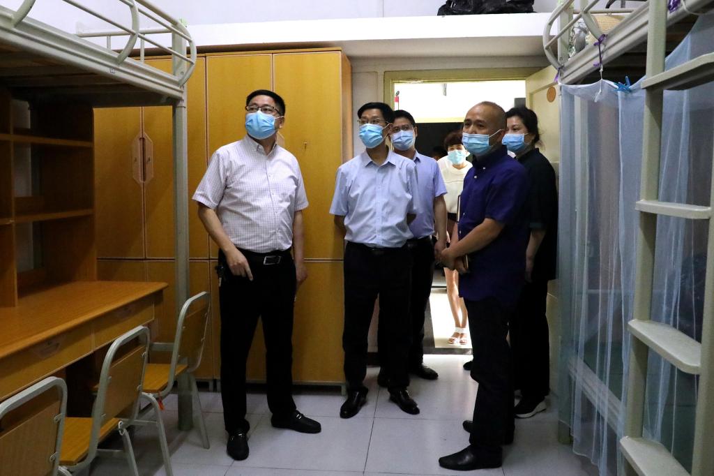 5月8日,市委教育工委委员、市教委专职督学莫龙飞一行到金年会调研疫情防控和学生返校前准备工作。学校副校长陈兴述、李国军和相关职能部门负责人陪同调研。