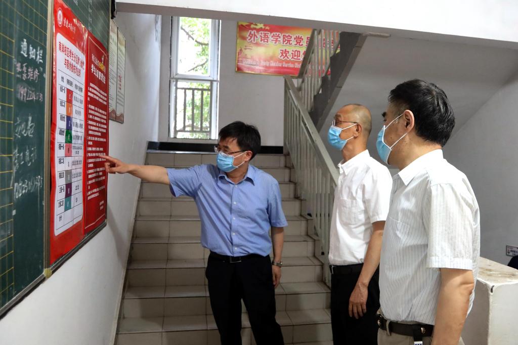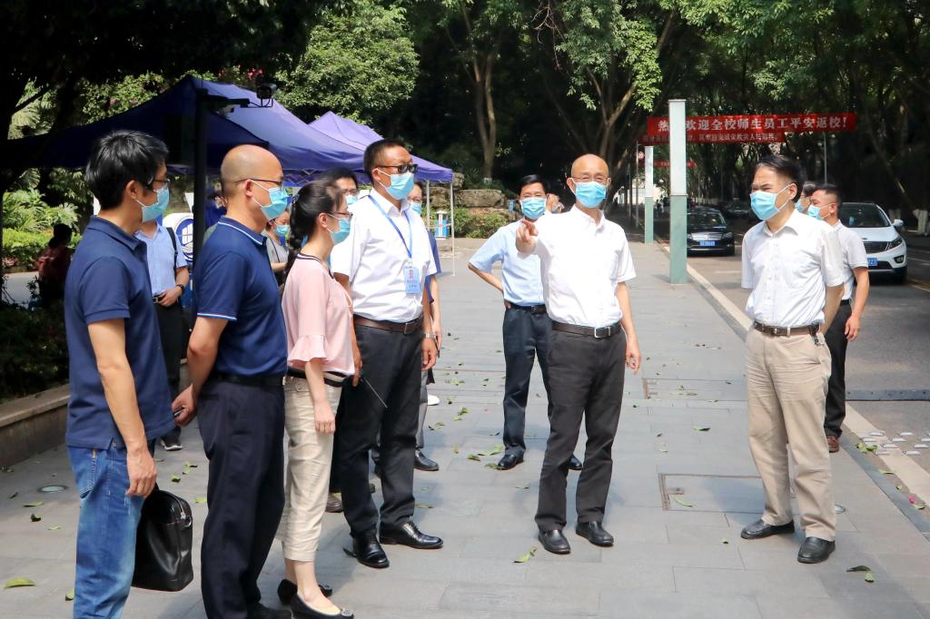 在调研过程中,朱维主任充分肯定学校疫情防控工作取得的阶段性成果。他表示南岸区将履行好属地管理责任,加强联防联控,积极主动支持学校做好复学复课等工作。