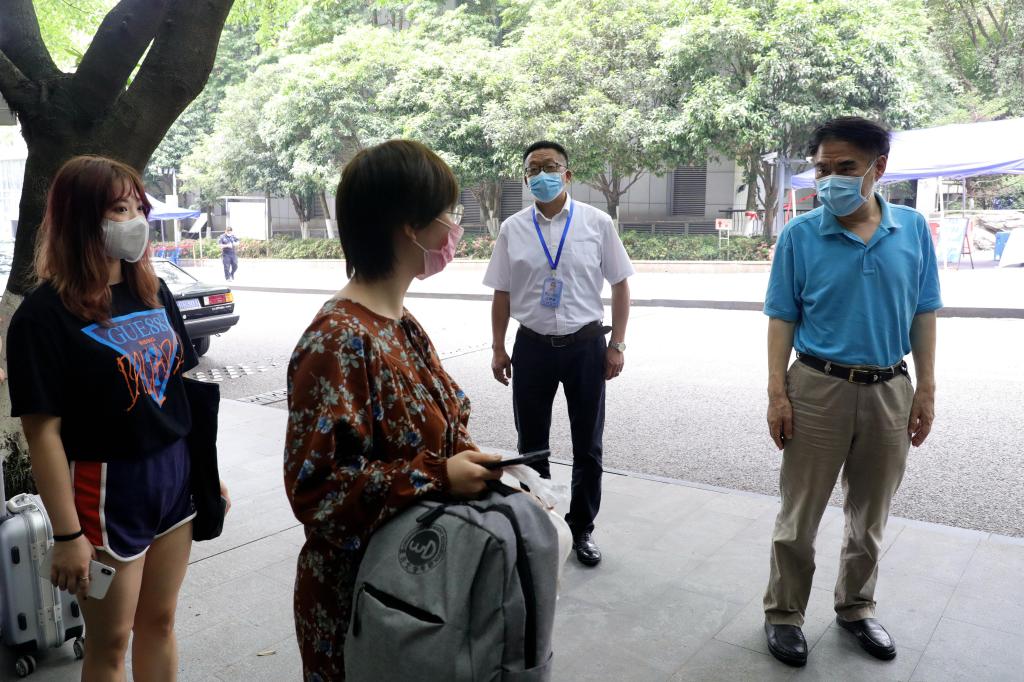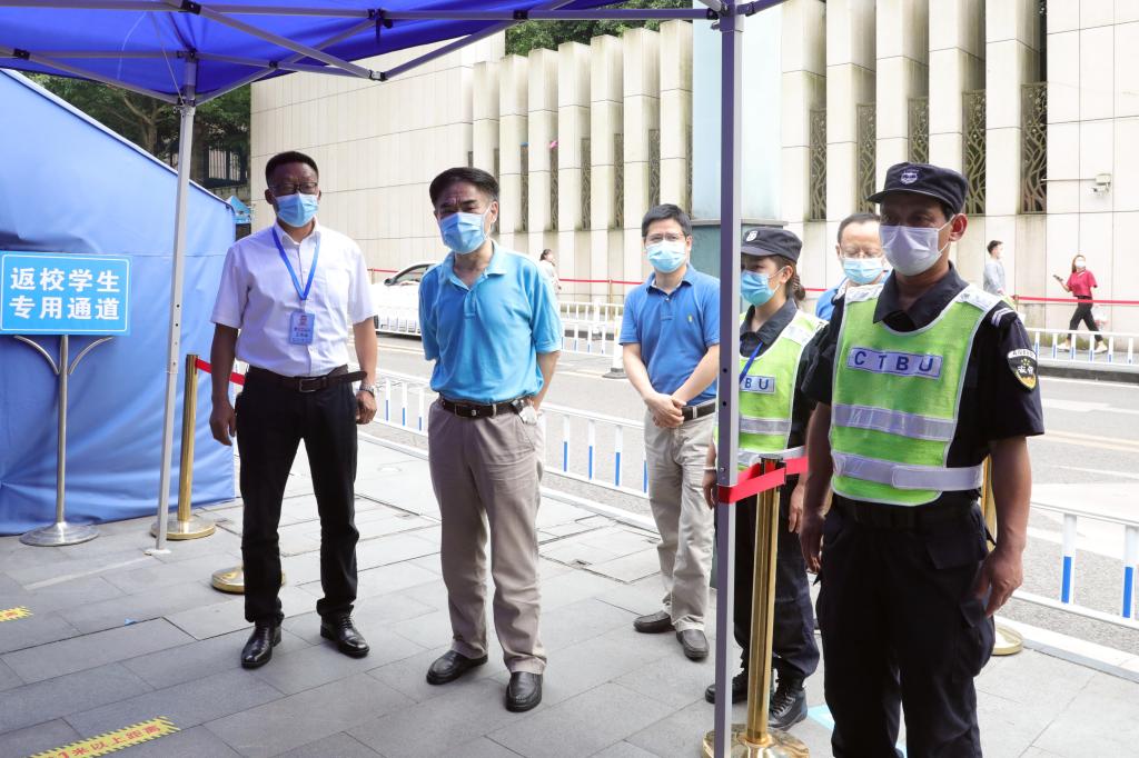 李书记一行先后来到了学校1号门和北区宿舍6栋看望返校学生,询问他们返校过程中的乘车班次、路上境况、进校情况、入住状况等;关心他们的生活,询问他们返校后是否有生活困难;关注他们的学业,询问他们线上上课的进度、考试准备情况等。他对大家提出了希望,在抗击疫情,共克时艰的过程中,要注重身心健康,好好学习,不断进步。李书记对相关工作人员提出要求,一定要把防疫工作做实做细,确保学生的健康和安全,保证他们的学习和生活质量。