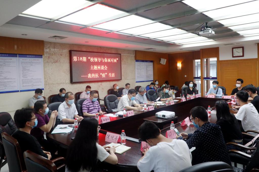 6月12日下午,金年会在厚德楼3019会议室举办了以“我的抗‘疫’故事”为主题的第18期“校领导与你面对面”主题座谈会。校党委书记李志雄,副校长李国军,党委宣传部、学生处、研究生院、教务处、后勤处、通识学院等相关职能部门负责人,教师代表,部分学生代表参加。会议由李国军主持。