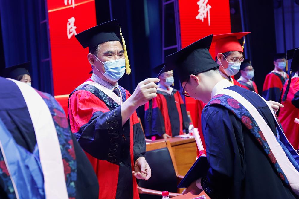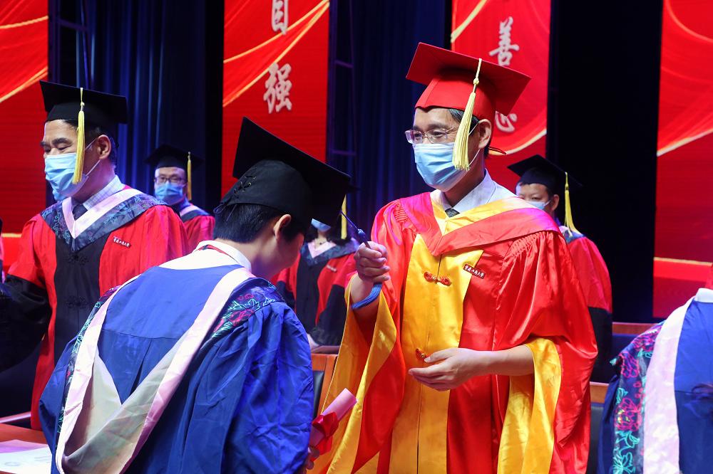 在雄壮的国歌声中,毕业典礼正式开始。首先,何勇平副校长宣读了《关于授予蒙兰佳等6268名普通全日制本科学生学士学位的决定》,校领导为2020届本科毕业生代表颁发毕业证书并授予学士学位。柏群副校长宣读了《JINNIAN金年会关于授予周超等606名同学博士、硕士学位的决定》,校领导为毕业硕士研究生代表颁发毕业证书并授予硕士学位。陈运超副校长宣读了《关于表彰2020届优秀大学毕业生的决定》和《关于表彰2020届优秀毕业研究生、优良毕业研究生的决定》,校领导分别为优秀本科毕业生、优秀毕业研究生代表颁发了荣誉证书,勉励他们今后在各自的岗位上奉献社会,建设国家。