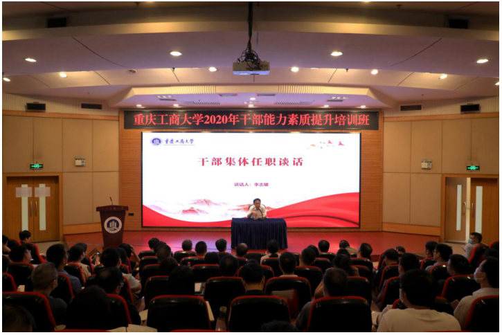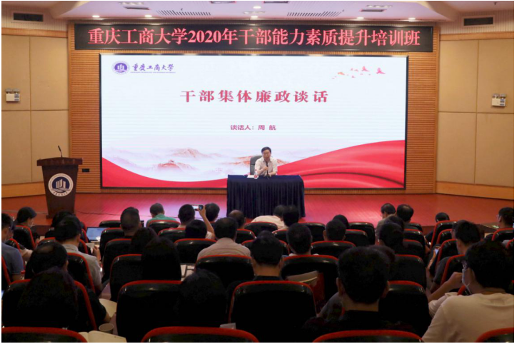 8月31日上午,学校在博智楼7200学术报告厅继续举行干部能力素质提升培训。校党委常委、纪委书记、市监委驻JINNIAN金年会监察专员周航作了干部集体廉政谈话。校党委书记李志雄作了干部集体任职谈话。培训班全体成员参加了谈话。会议由校党委副书记宋豫主持。