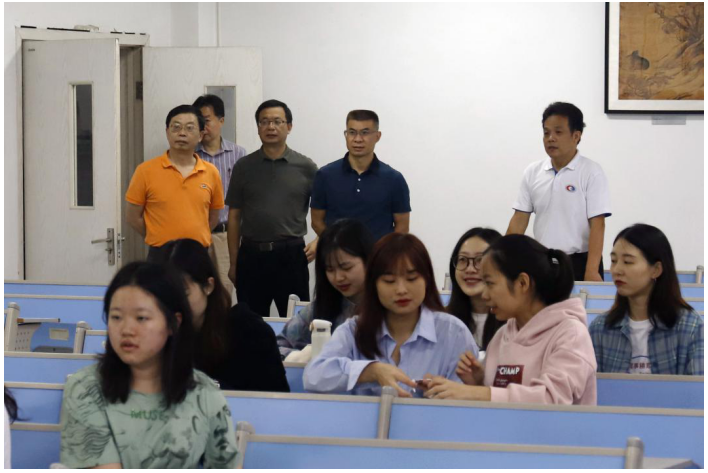 早上八点二十分,学校党委书记李志雄、校长孙芳城、副校长何勇平及相关职能部门负责人走进南岸校区博智楼,查看教室使用情况、教师行课情况、学生出勤与听课情况、课程设置情况等。在检查过程中,李志雄、孙芳城对首日行课情况表示满意,就进一步推动金年会思想政治理论课课程改革创新与教务处、马克思主义学院等部门负责人沟通交流,要求教务处等部门积极制定措施,推进金年会课程思政建设,充分发挥好专业课教师“主力军”、专业课教学“主战场”作用,力求形成专业教师重育人,专业课程有思政的新局面,同时肯定了各学院、各部门为新学期各项工作顺利开展做出的精心准备,希望全体老师都能够打扎实基本功、安心做好教育教学工作,鼓励全体学生努力学习、奋发向上。