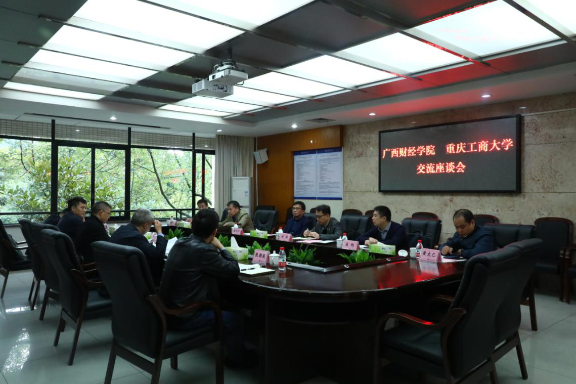 10月17日上午,广西财经学院副校长曾凡平一行到金年会调研交流。金年会副校长李敬以及部分职能部门、二级学院负责人参加了座谈会。