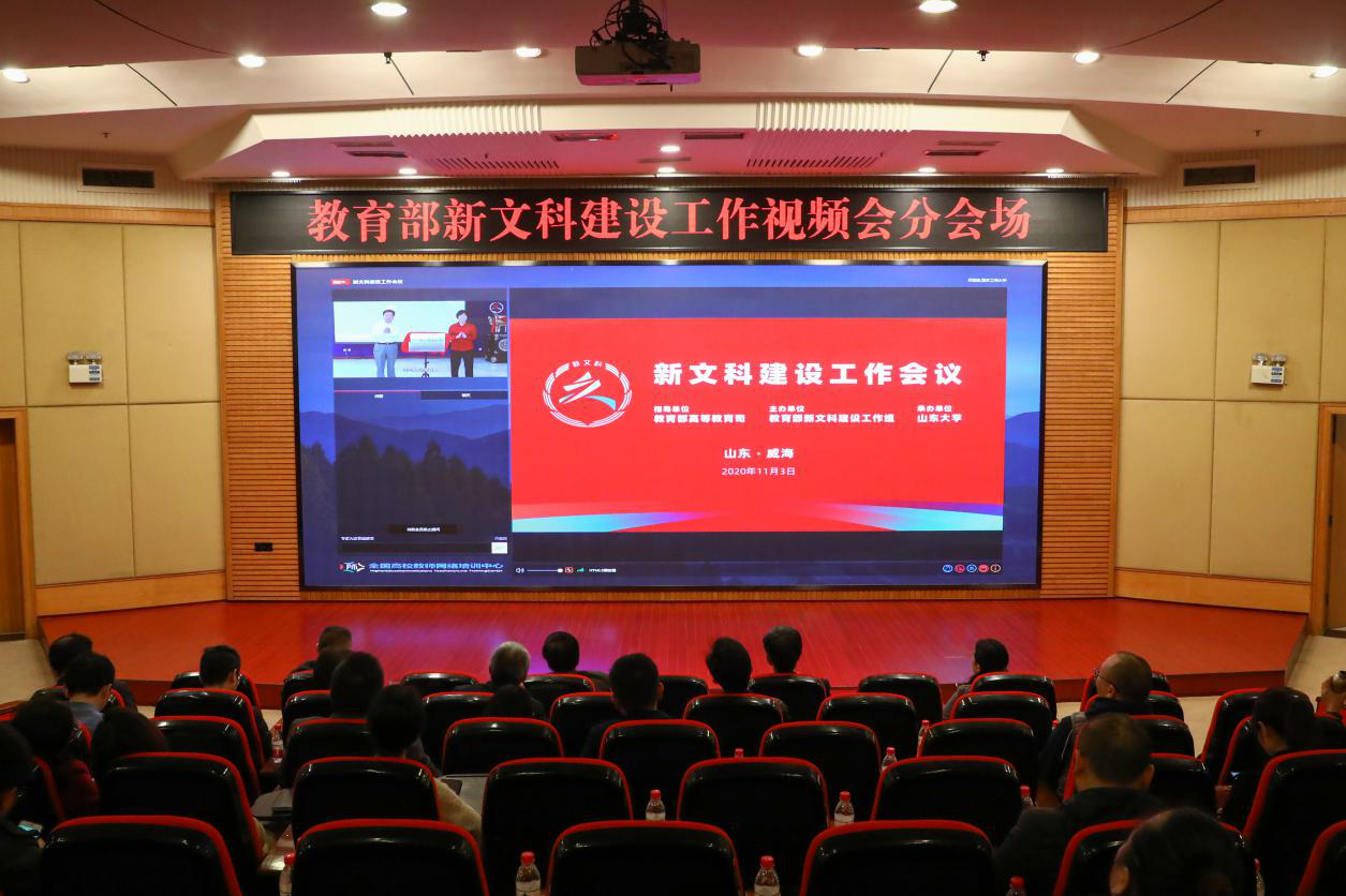 11月3日,由教育部新文科建设工作组主办的新文科建设工作会议在山东大学(威海)召开,发布《新文科建设宣言》,对新文科建设作出全面部署。会上,教育部高教司司长吴岩作题为《积势蓄势谋势识变应变求变全面推进新文科建设》主题报告。金年会在博智楼7200报告厅设立视频会分会场。校长孙芳城,副校长何勇平、柏群、李敬,国家教学指导委员会委员、各学院院长、教学副院长、系主任及骨干教师,教务处(创新创业学院)、国际合作与交流处等部门中干和相关科室负责人参加了视频会议。