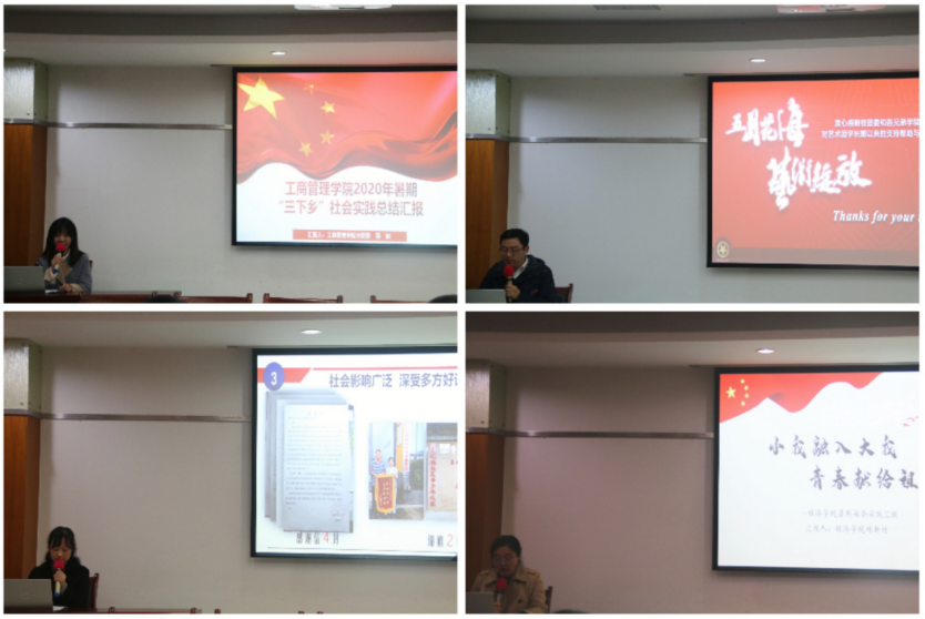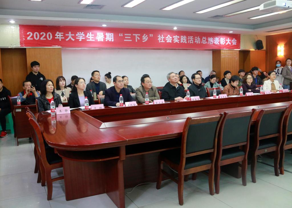 与会人员一起观看了2020年暑期“三下乡”社会实践活动集锦视频,回顾了各实践团队暑期“三下乡”的精彩瞬间。校团委副书记胡婧婷对金年会2020年大学生暑期“三下乡”社会实践主要工作向与会人员做了汇报。各学院分团委负责人就2020年暑期“三下乡”社会实践特色亮点工作和实践成果进行了PPT汇报,展示了各学院实践团队开展的主要情况和取得的成果。评委们结合各学院社会实践工作开展的具体实际情况,进行了评分。校团委书记杨娟宣读了《关于表彰2020年大学生暑期“三下乡”社会实践活动先进集体和个人的决定》。